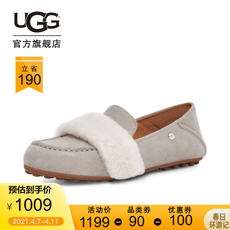 商品名称:UGG 2021春季新款女士单鞋茸茸经典加州乐福鞋豆豆鞋1117930TS SEL 灰色 37