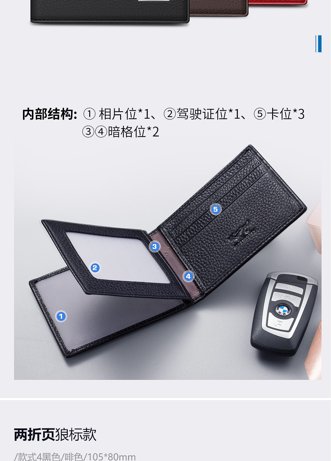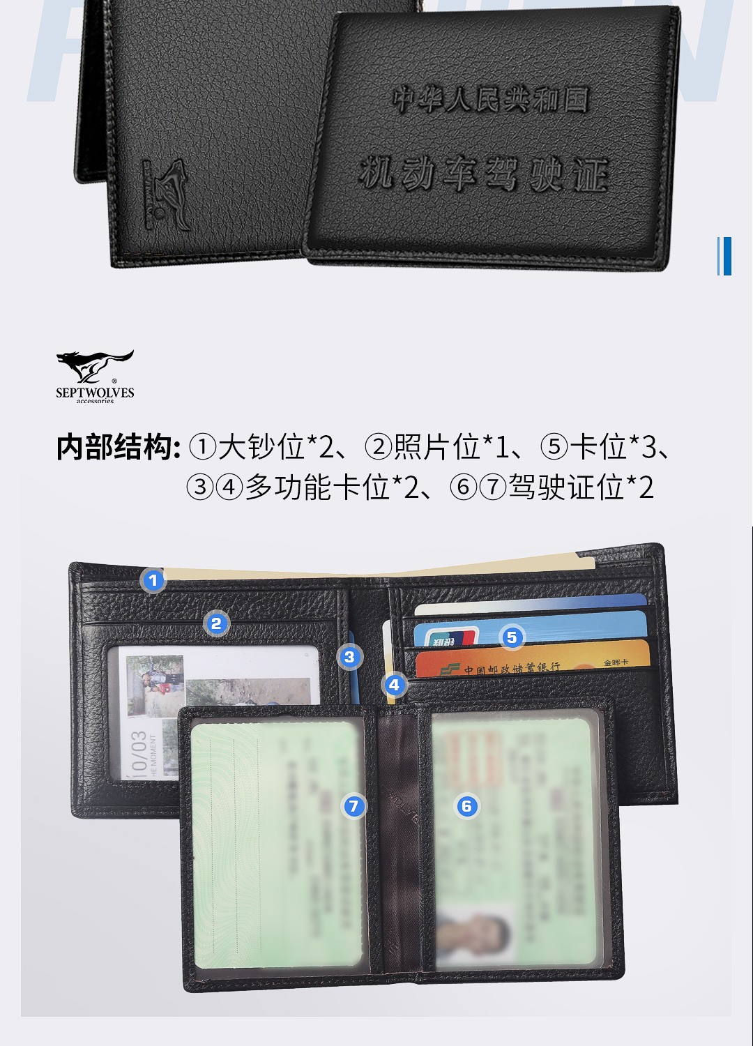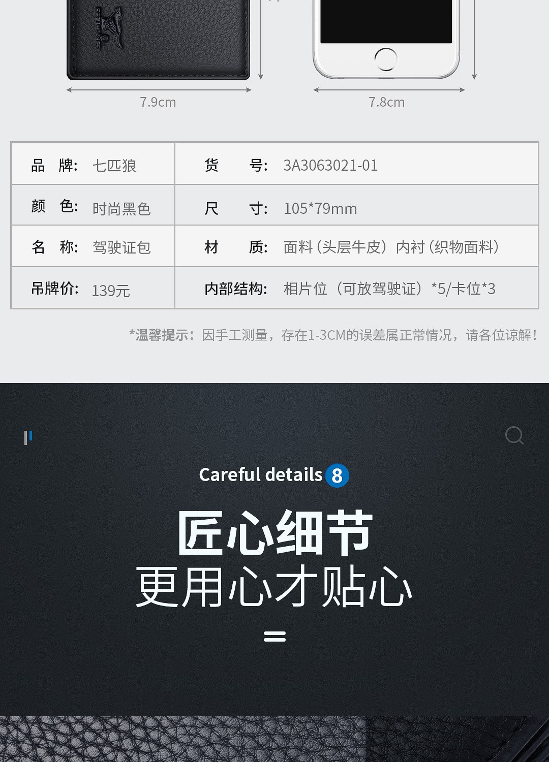 商品名称:七匹狼驾驶证皮套男士多功能卡包真皮驾照保护卡套一体机动车证件 四折黑色-直售保障