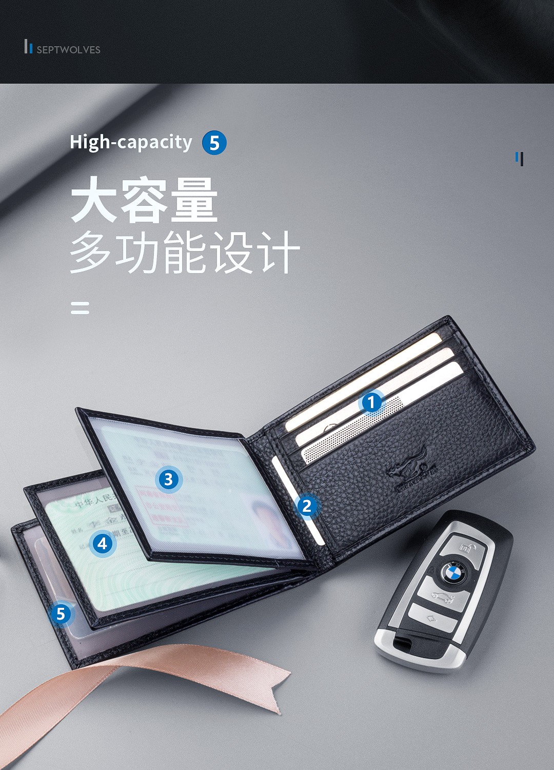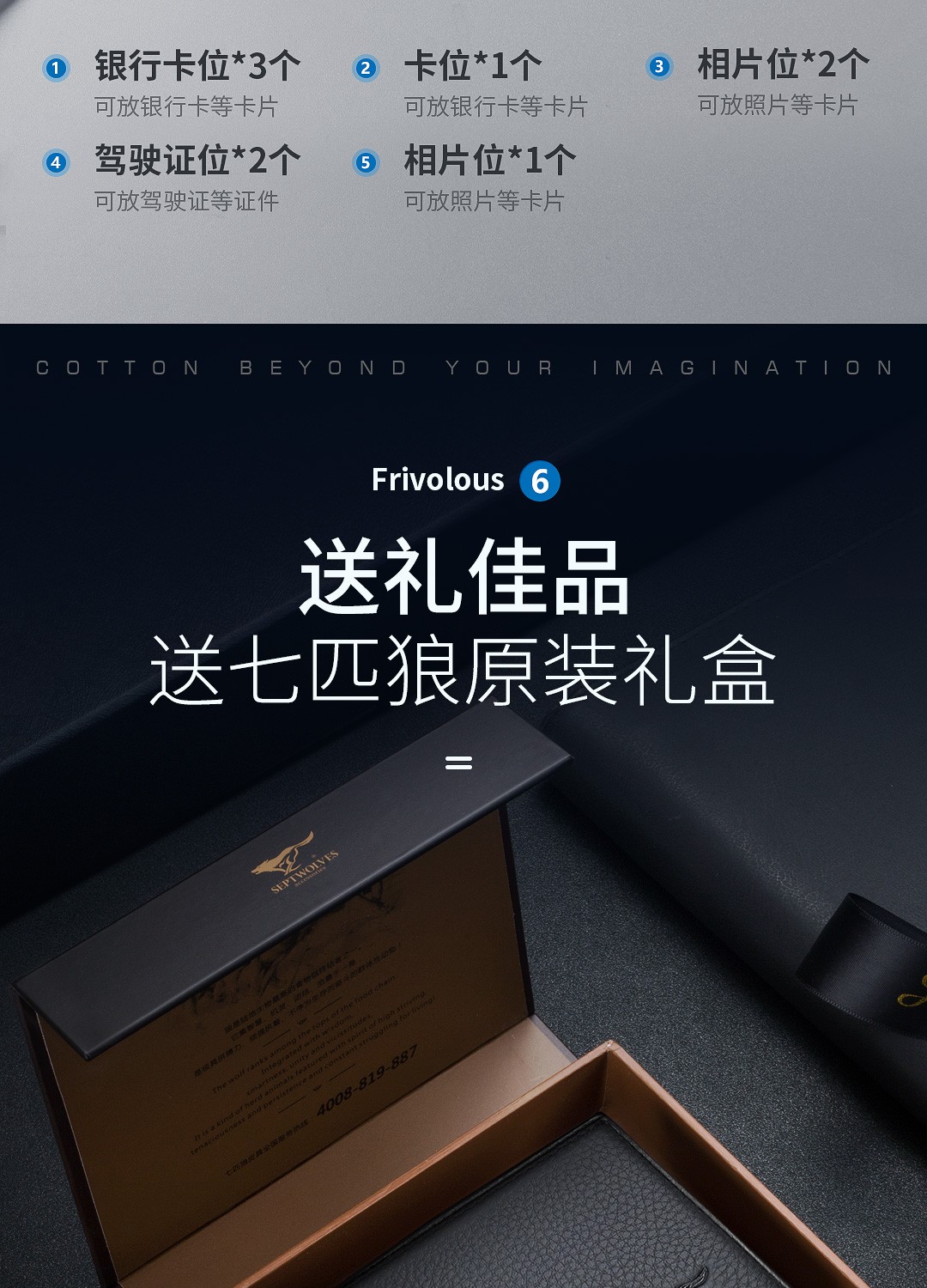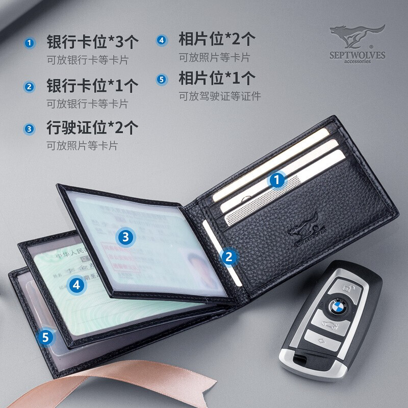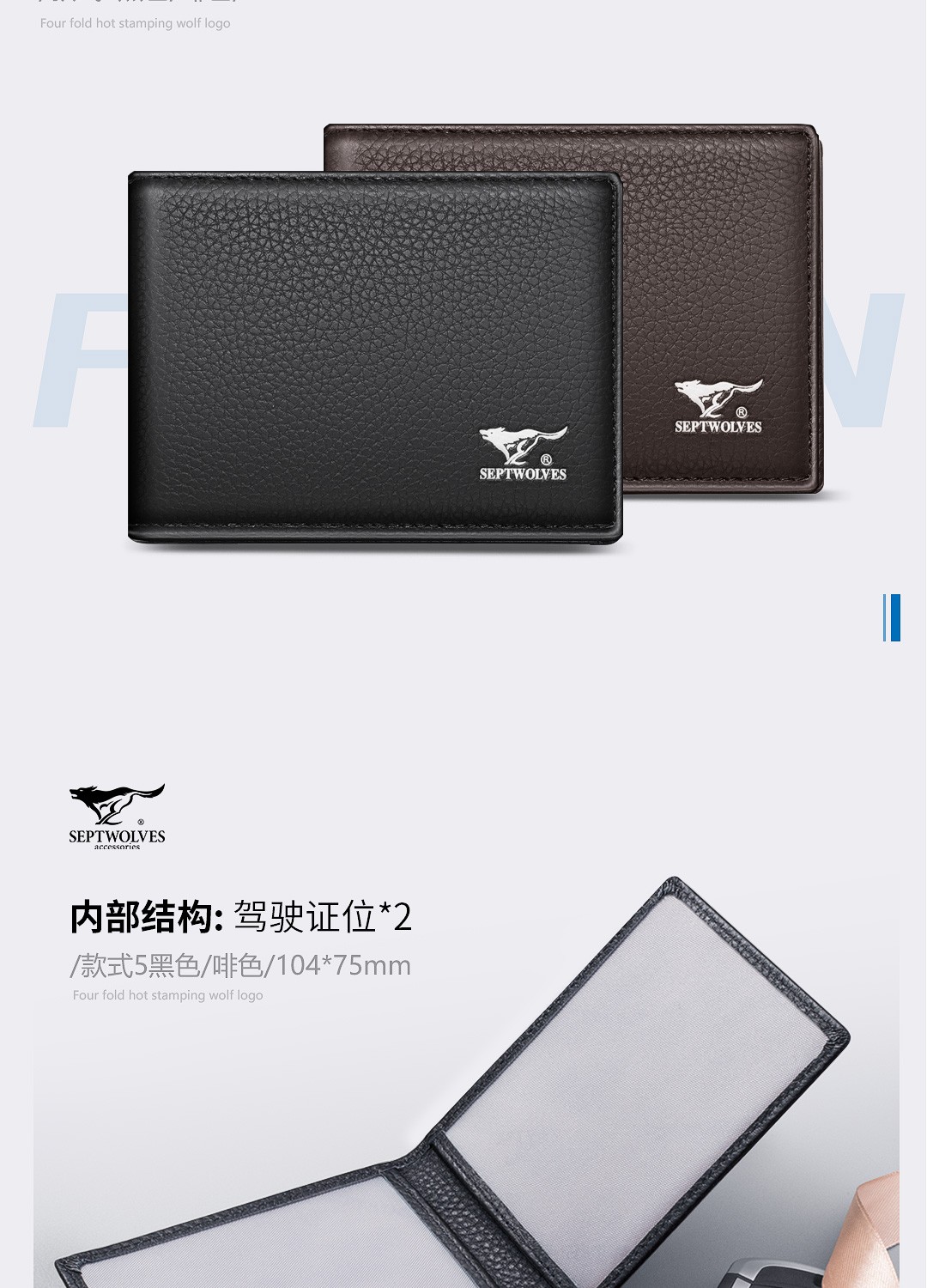 商品名称:七匹狼驾驶证皮套男士多功能卡包真皮驾照保护卡套一体机动车证件 四折黑色-直售保障
