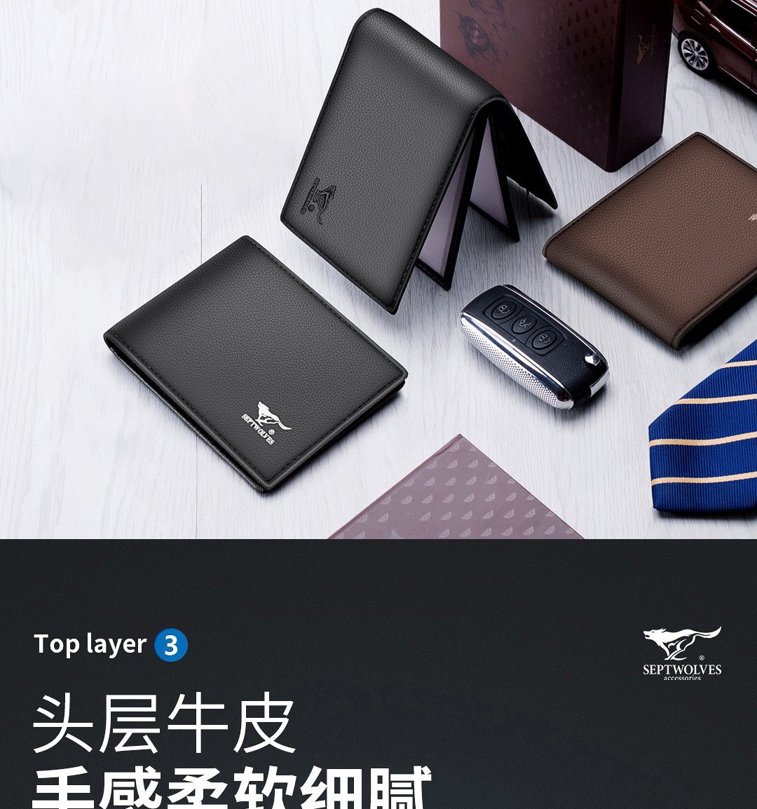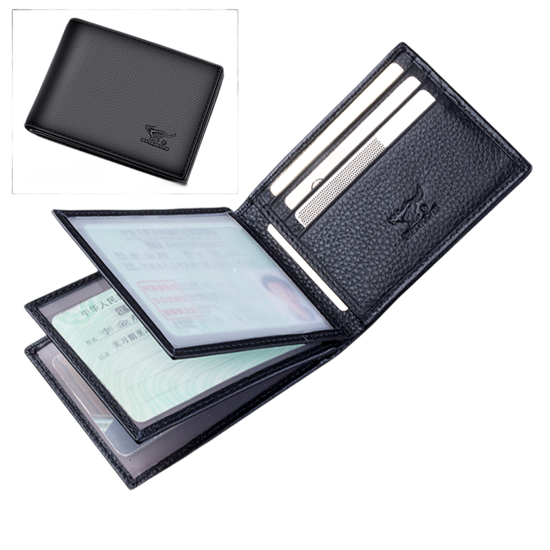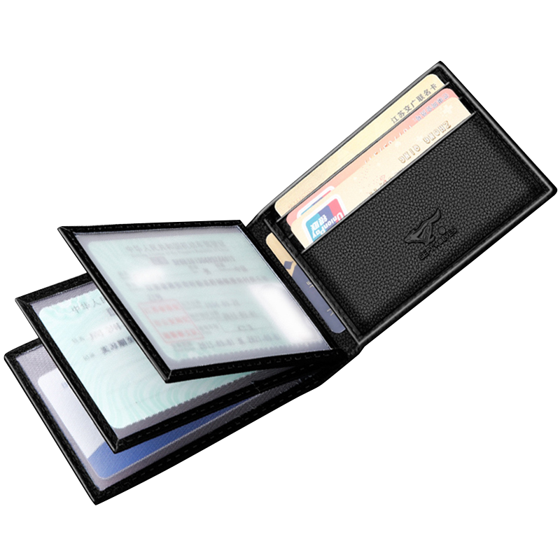 七匹狼驾驶证皮套男士多功能卡包真皮驾照保护卡套一体机动车证件 四折黑色-直售保障