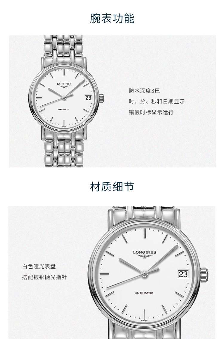 商品名称:浪琴(Longines)瑞士手表 时尚系列 机械钢带女表 情侣对表 L43224126