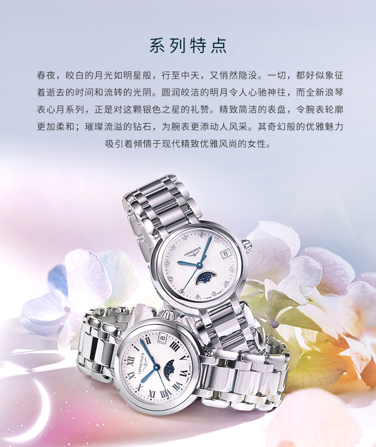 商品名称:浪琴(Longines)瑞士手表 心月系列 石英钢带女表 L81124716