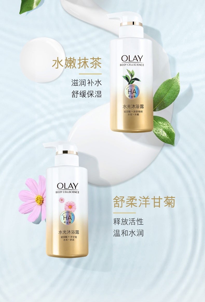 玉兰油 OLAY水光肌玻尿酸沐浴露套装 滋养百花蜜300ml+莹亮白珍珠300ml 冰激淋口味 干皮挚爱