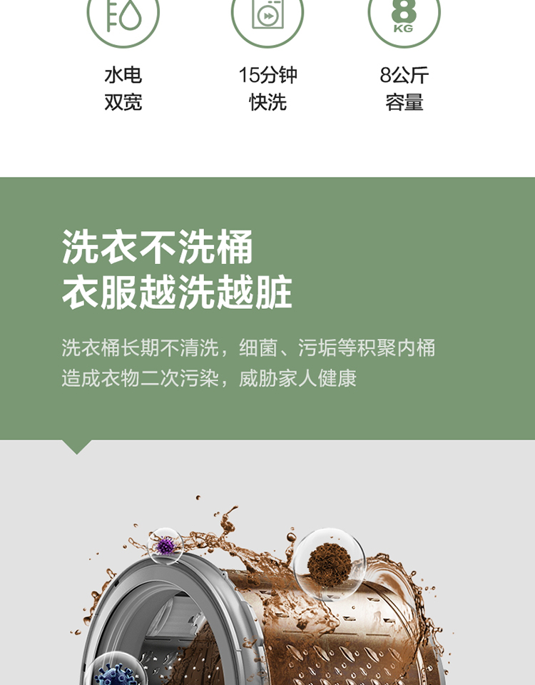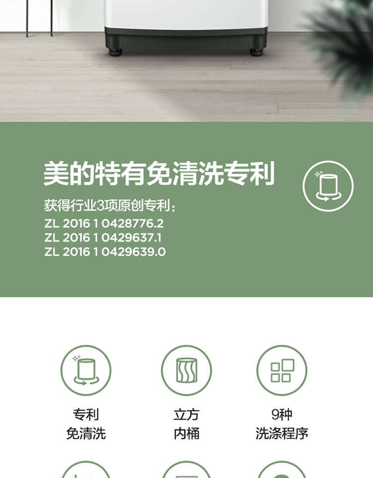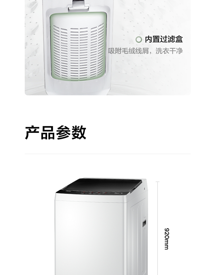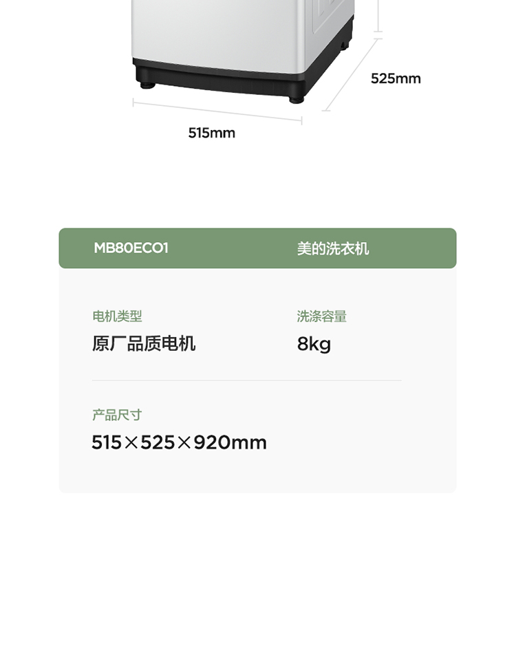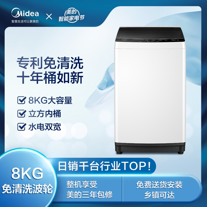 商品名称:美的 Midea 波轮洗衣机全自动 8公斤专利免清洗十年桶如新 立方内桶 水电双宽 MB80ECO1
