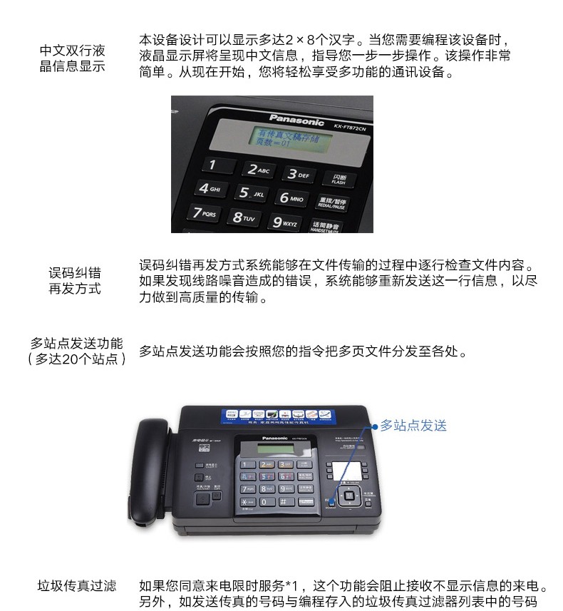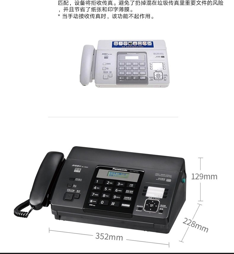 商品名称:松下传真机KX-FT872CN 热敏传真机中文显示传真电话复印一体机 国产热敏纸