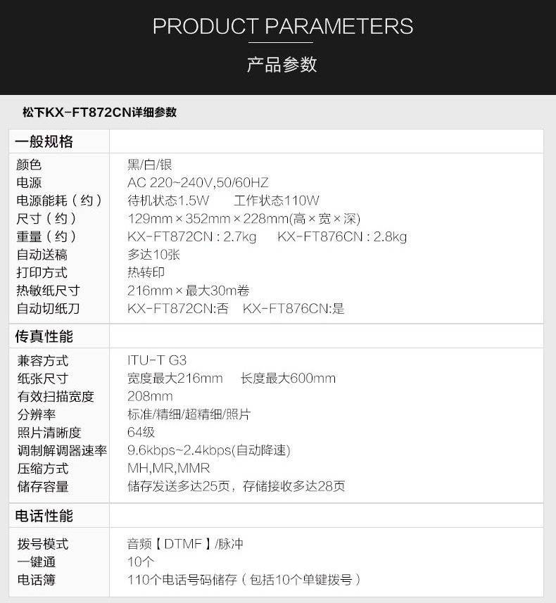 型号:KX-FT872CN