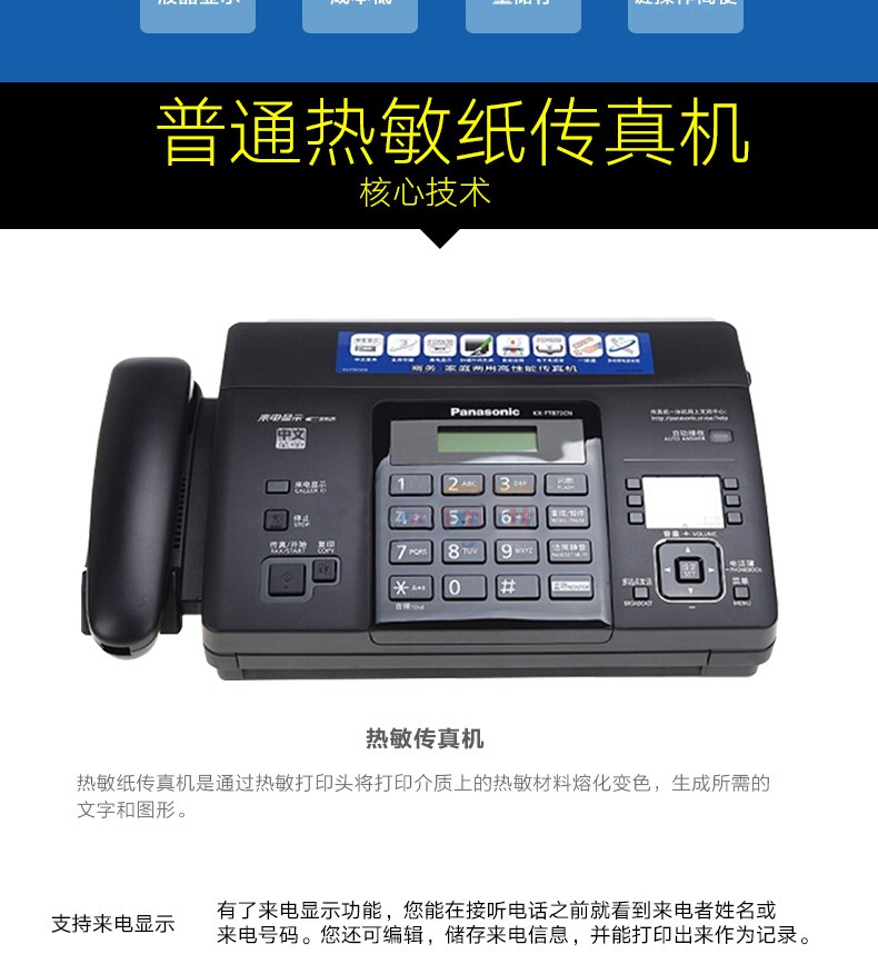 松下传真机KX-FT872CN 热敏传真机中文显示传真电话复印一体机 国产热敏纸