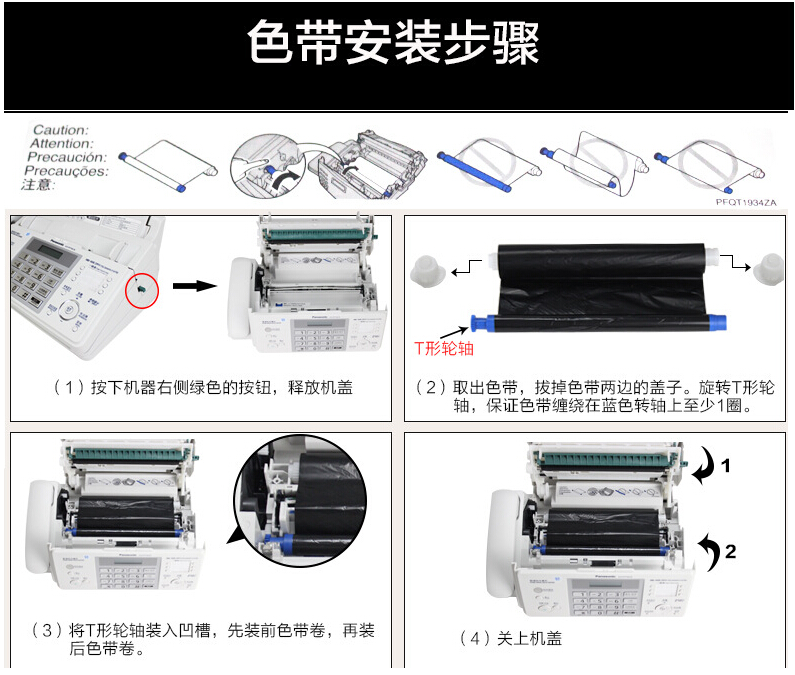 松下传真机专用碳带(国产品牌):长度约为70米左右,做工精细,两端齿轮处有保护套,碳带导轴采用通体硬塑材质,不易卡带、不易卡纸。