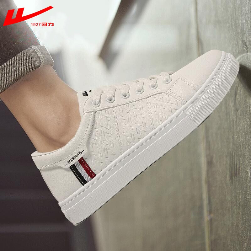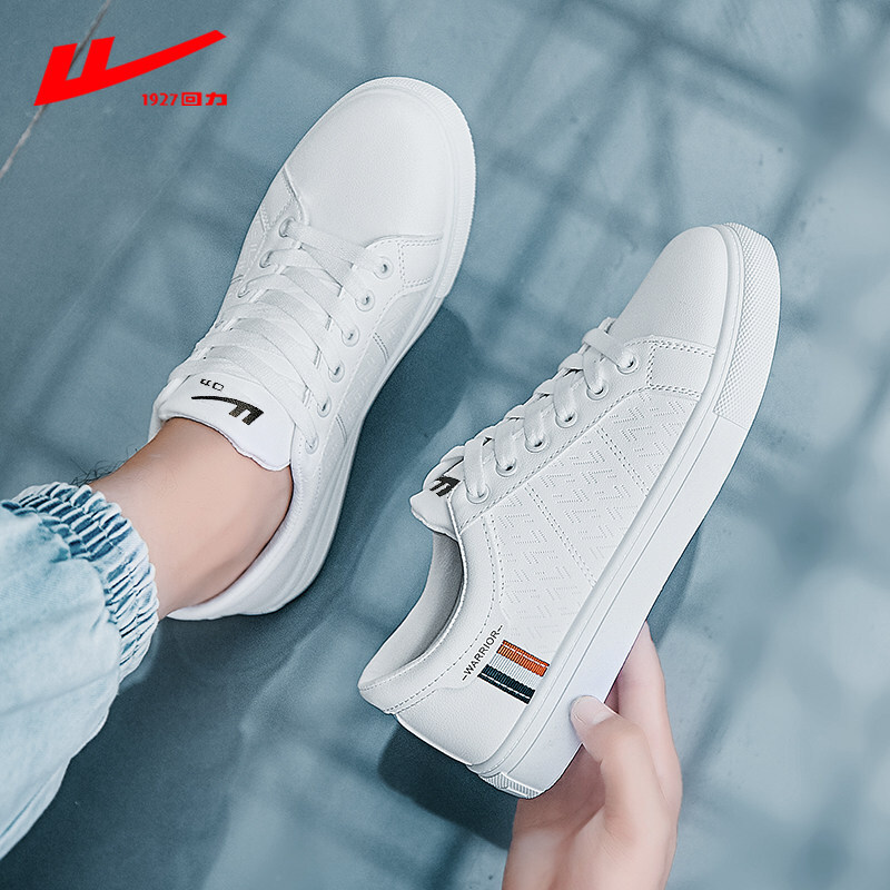 商品名称:回力小白鞋男士2021春夏季皮面休闲鞋运动板鞋男款百搭情侣潮流白色韩版男鞋子 白黑 42脚瘦买正码,脚宽请买大一码