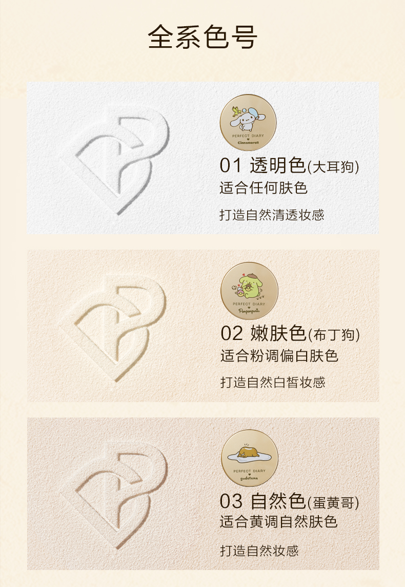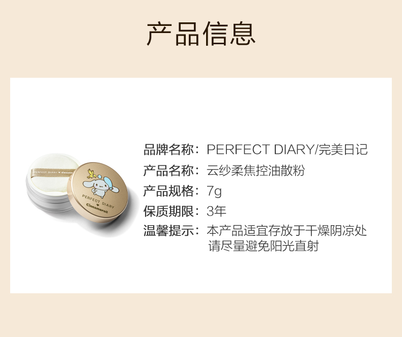 商品名称:完美日记(PERFECT DIARY)云纱柔焦控油散粉 01 三丽鸥大耳狗限定款7g