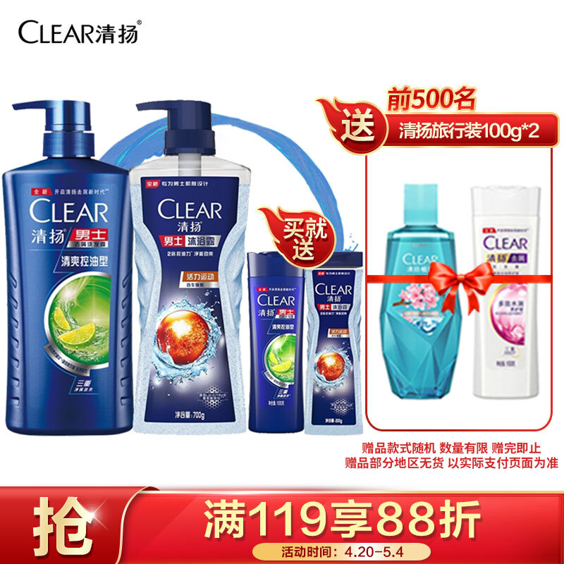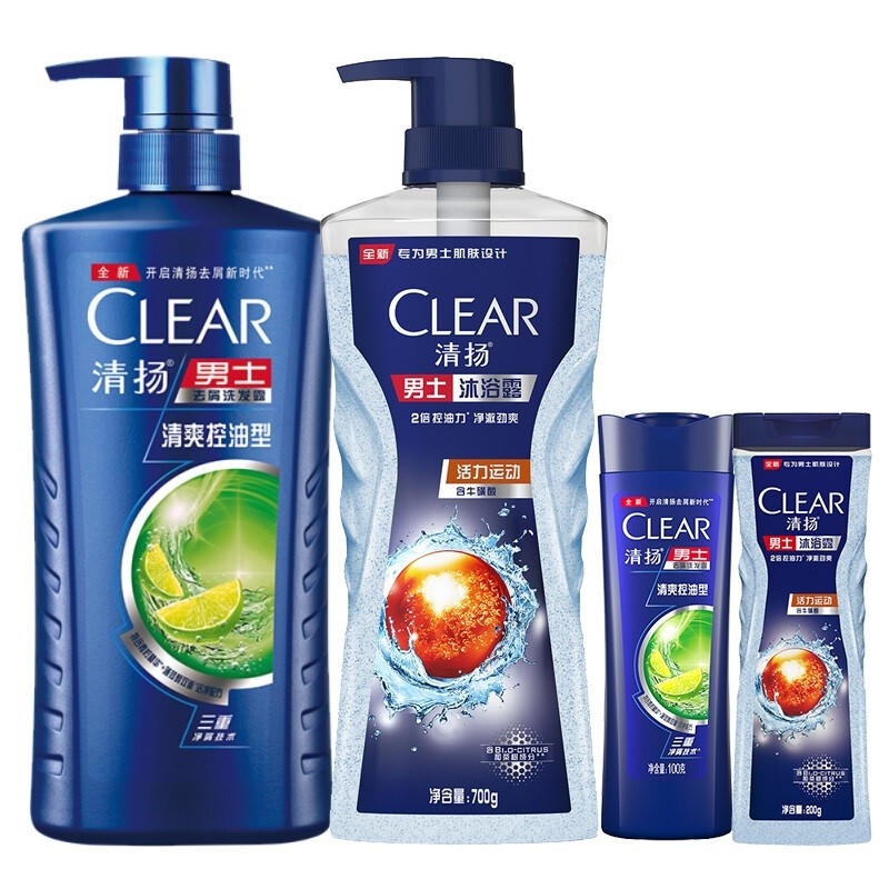 清扬(CLEAR)洗发水沐浴露套装活力运动沐浴露700gx1清爽控油型洗发露720gx1活力运动沐浴露100gx1清爽控油洗发露100gx1