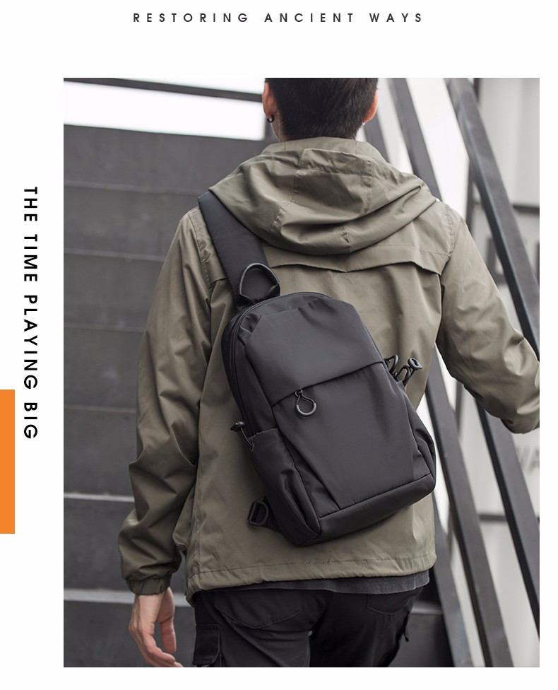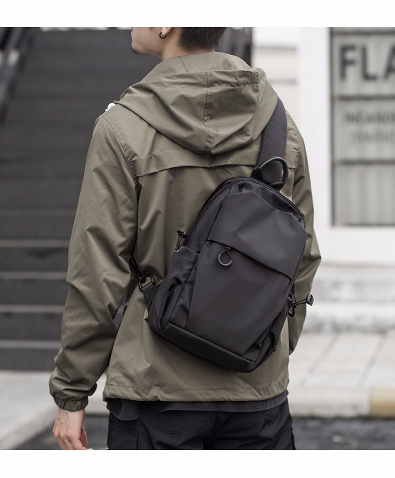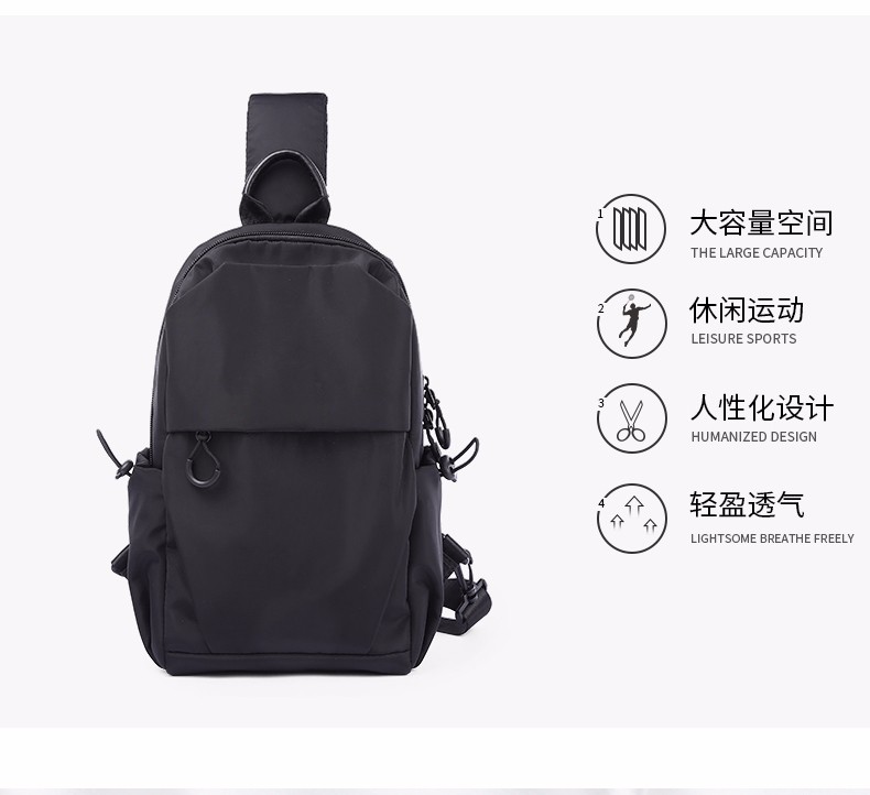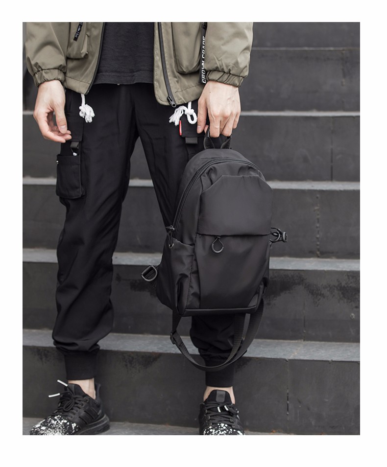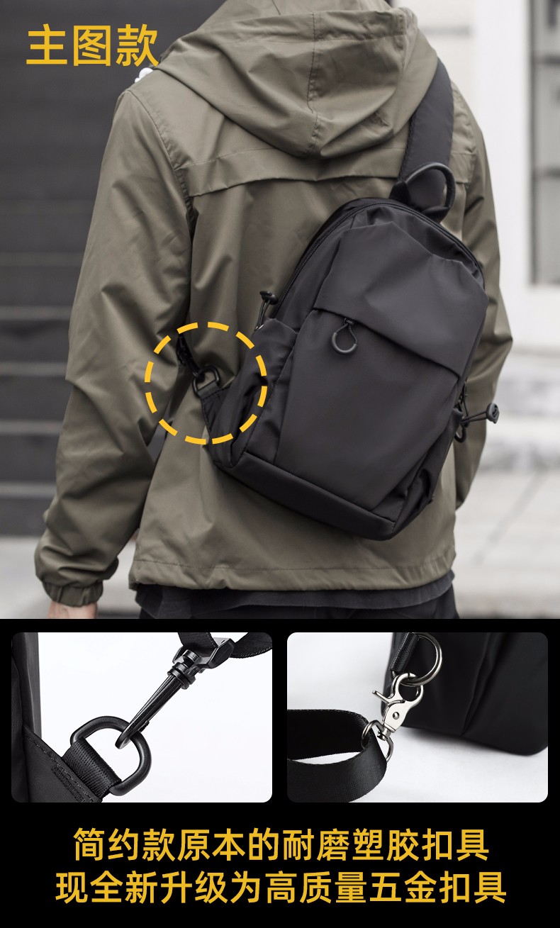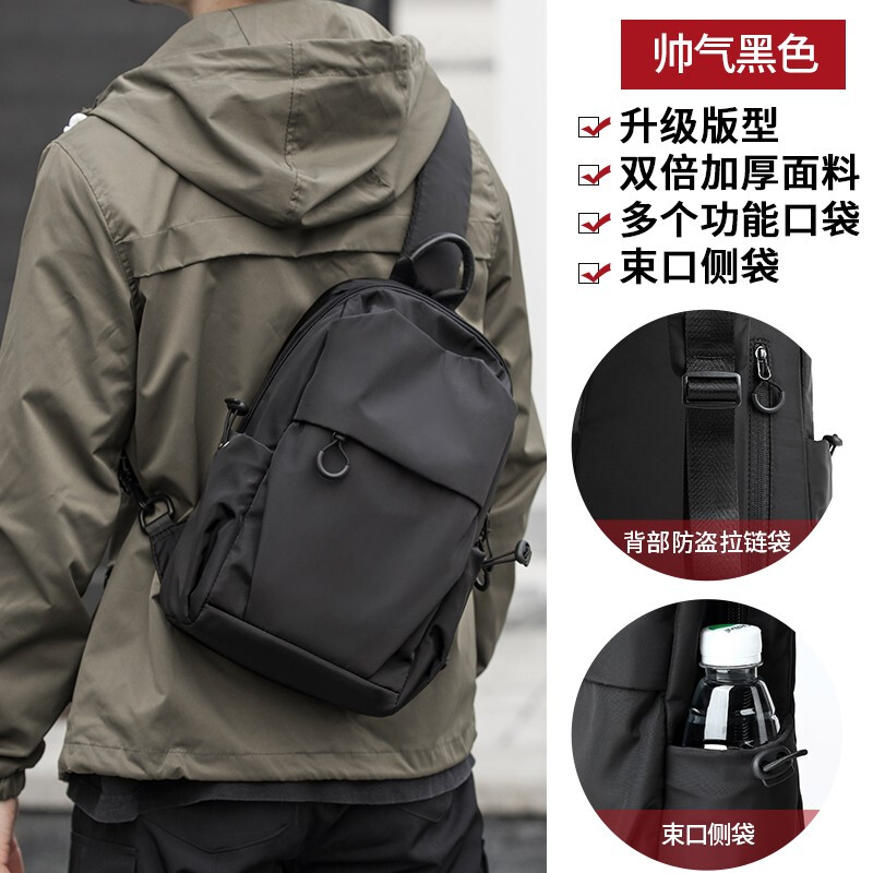 商品名称:墨一 斜挎包男单肩包潮牌简约男士胸包新款韩版休闲背包帆布斜跨包学生运动潮流小腰包 酷黑色升级款