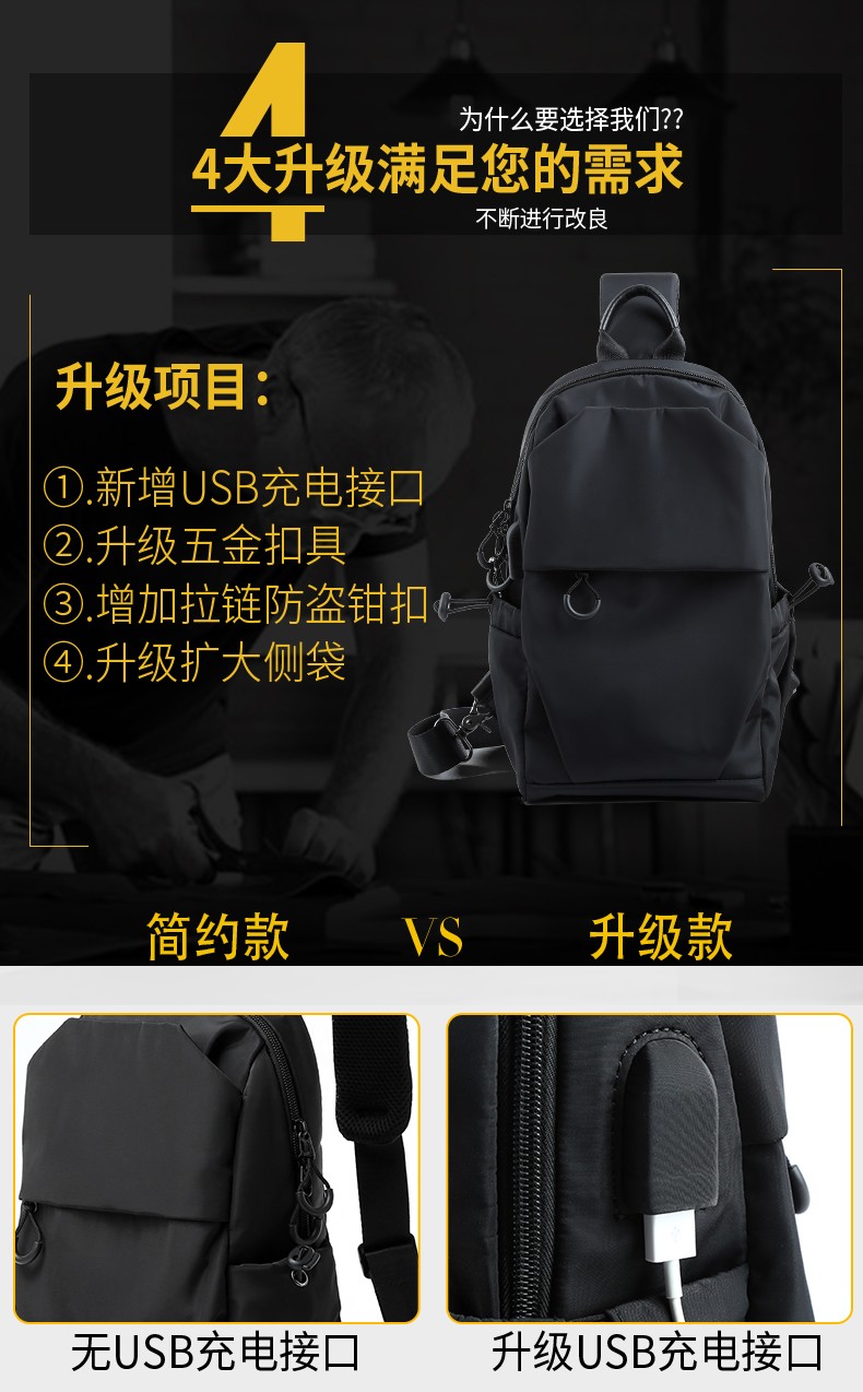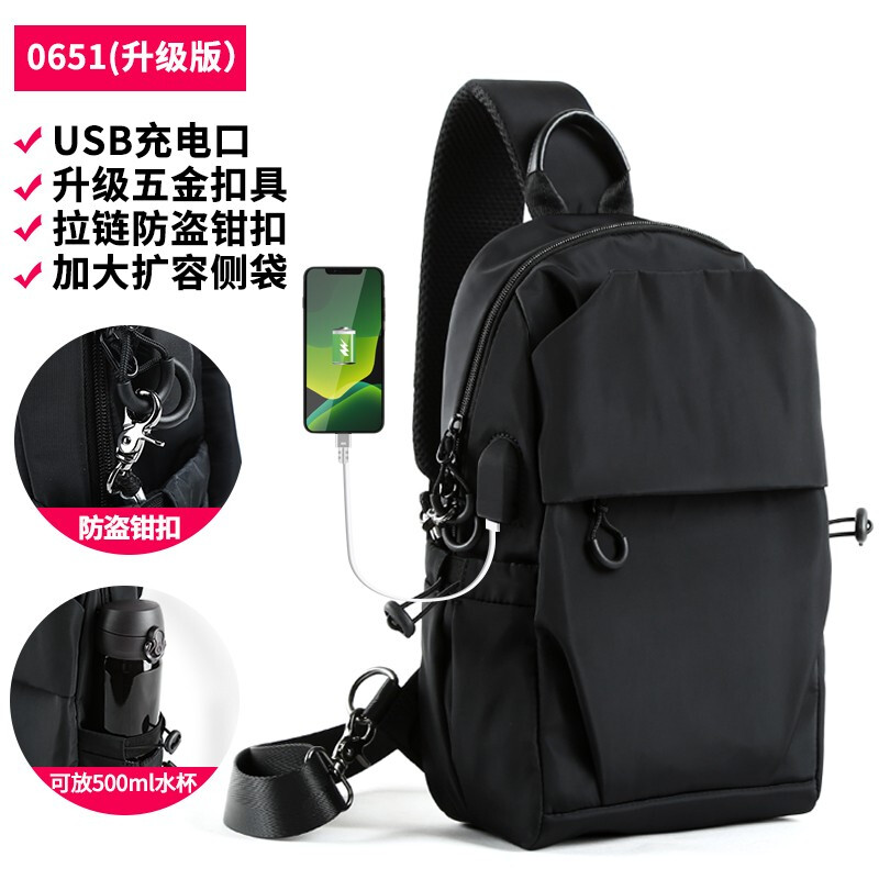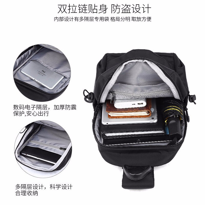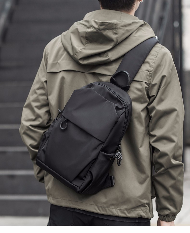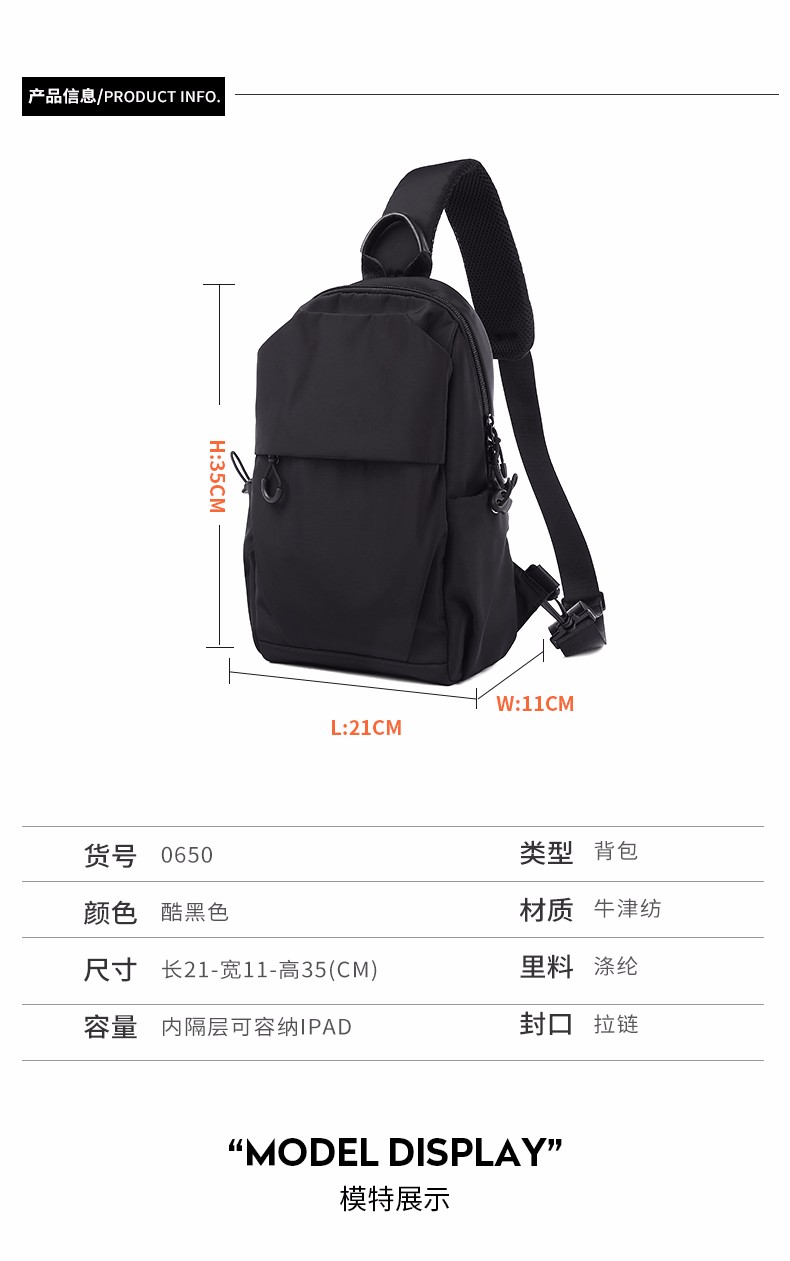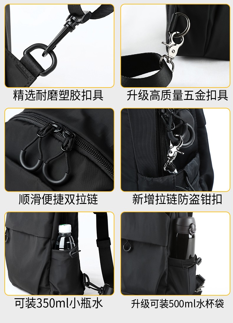 商品名称:墨一 斜挎包男单肩包潮牌简约男士胸包新款韩版休闲背包帆布斜跨包学生运动潮流小腰包 酷黑色升级款