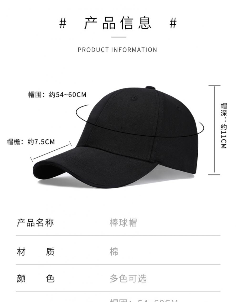 商品名称:四夕洁 帽子男潮春夏纯色鸭舌帽遮阳帽韩版百搭经典棒球帽女ins潮牌帽休闲太阳帽户外帽运动帽情侣帽 定制请联系客服 可调节(55-60cm)