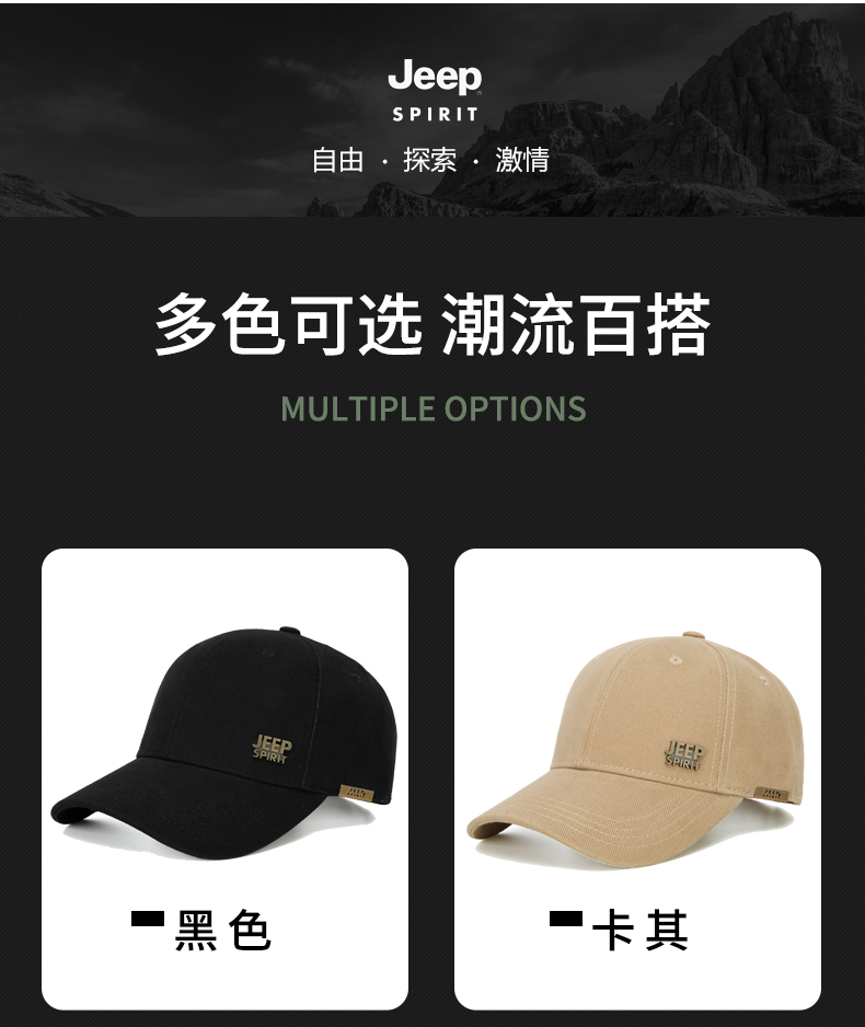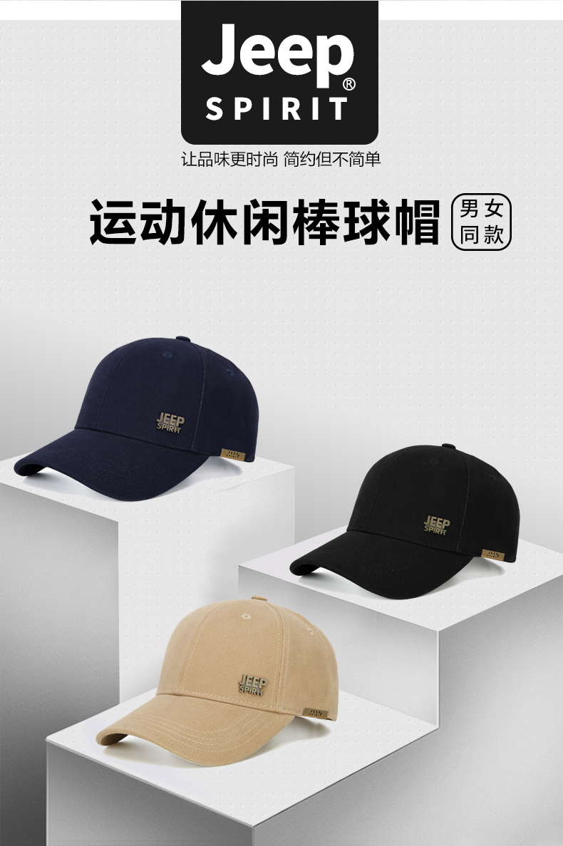 吉普(JEEP)帽子男士经典棒球帽男春夏季韩版潮流鸭舌帽女士防晒遮阳户外运动钓鱼帽A0152 黑色