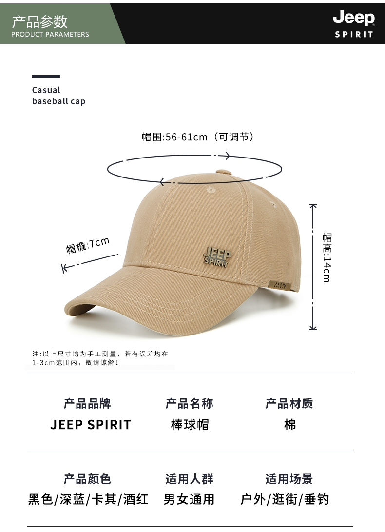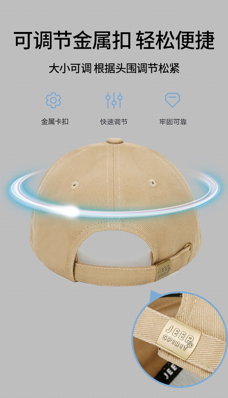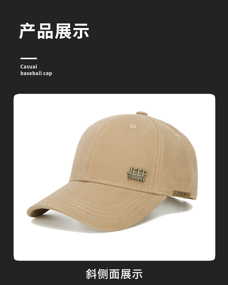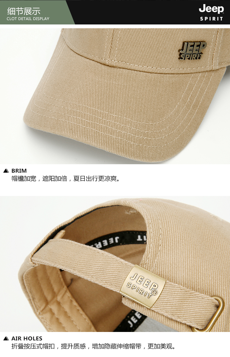商品名称:吉普(JEEP)帽子男士经典棒球帽男春夏季韩版潮流鸭舌帽女士防晒遮阳户外运动钓鱼帽A0152 黑色
