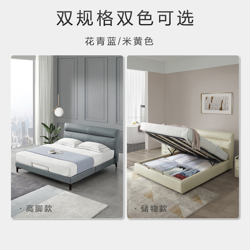 商品名称:顾家家居KUKA 真皮皮床 简约现代卧室双人床 15天发货 DK.B168 1.8m 米黄色 高脚款