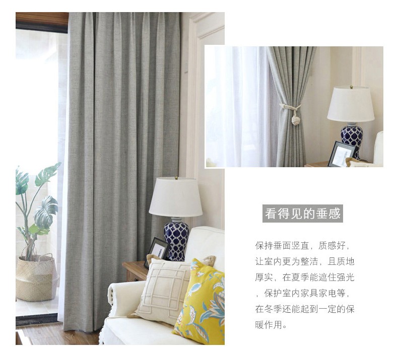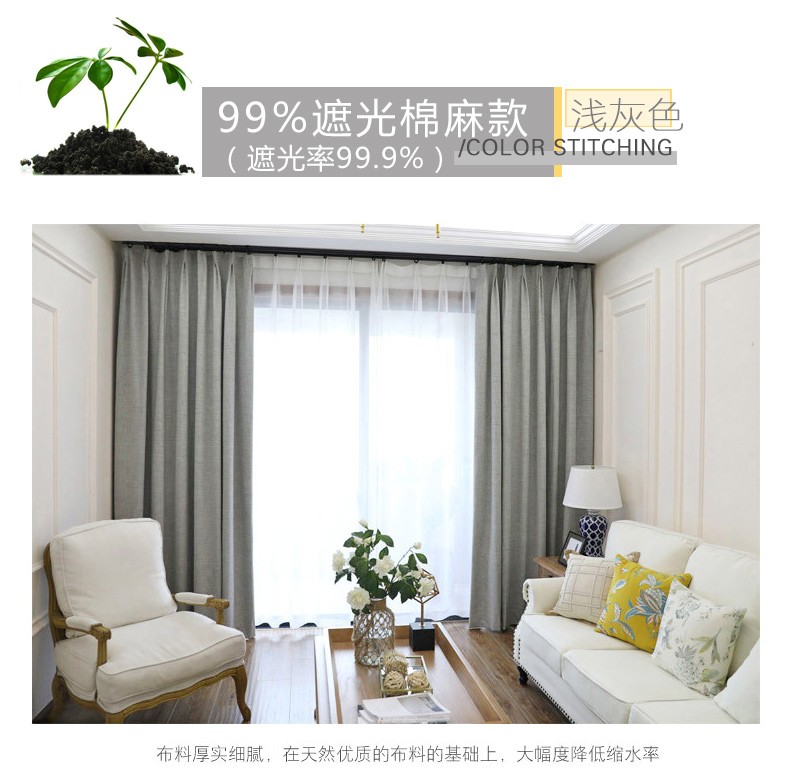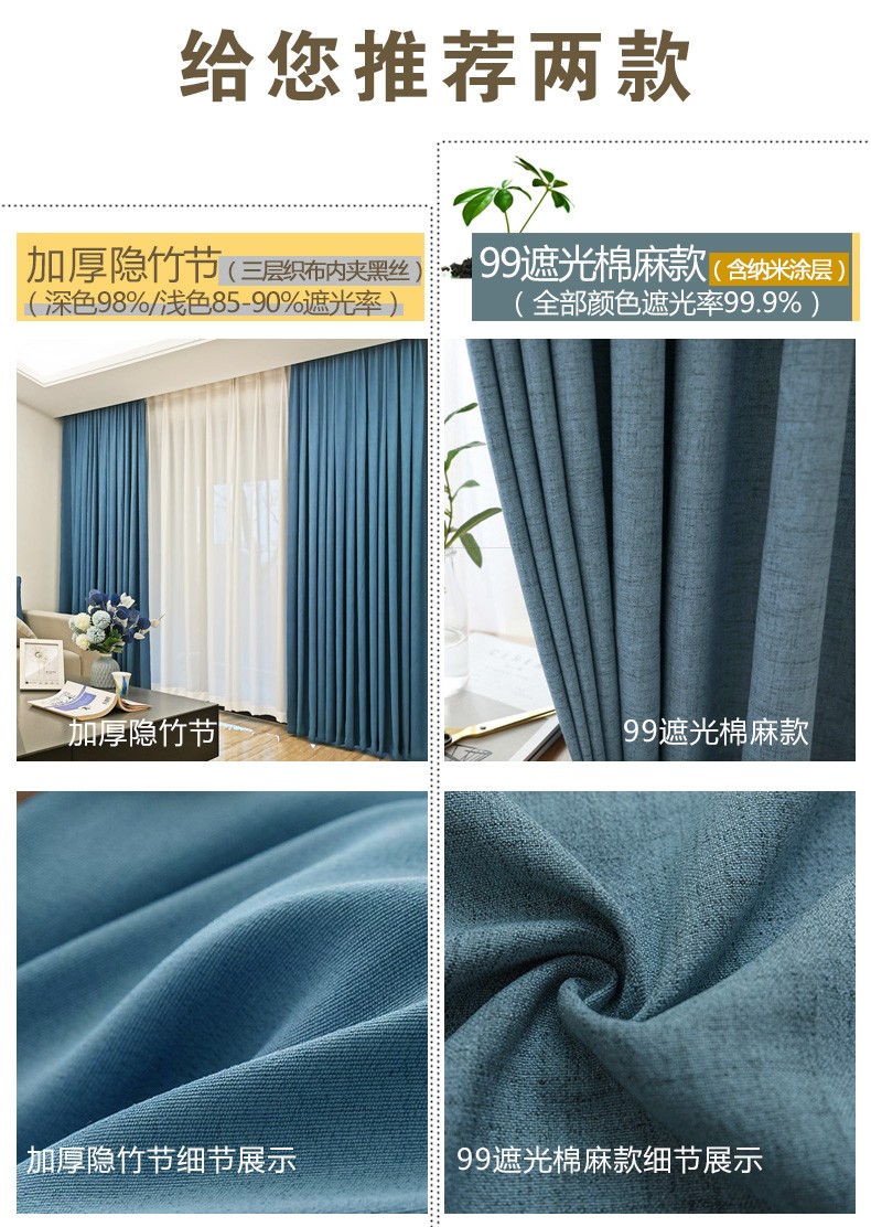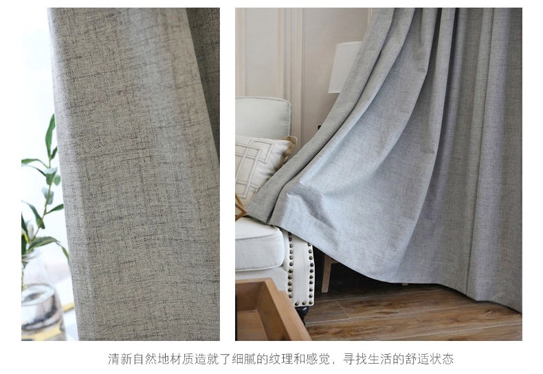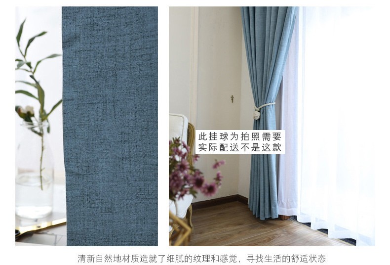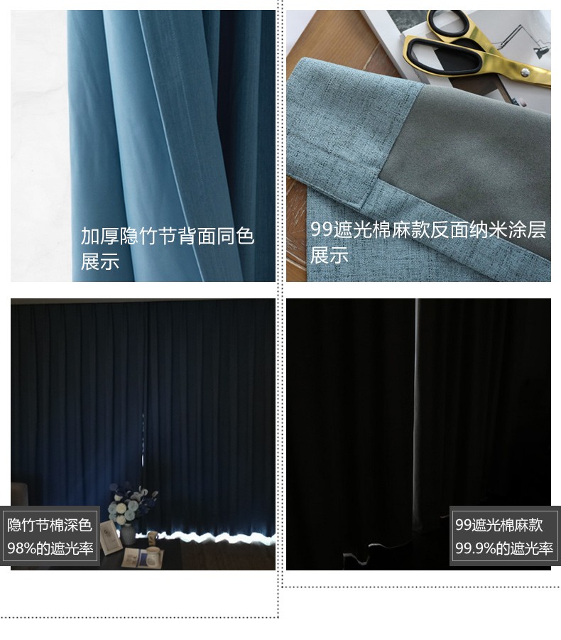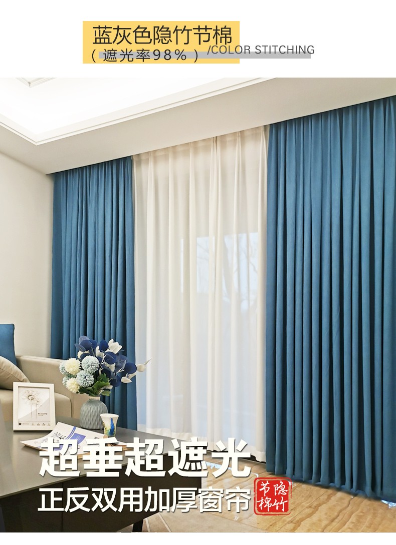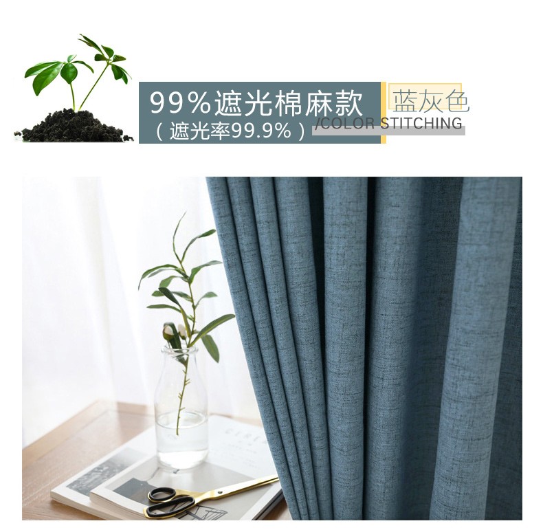 商品名称:灵水绣简约北欧风隐竹节棉麻质感全遮光遮阳窗帘布 现代客厅卧室飘窗阳台 隔音隔热加厚高遮光窗帘成品定制 98%遮光率-蓝灰色窗帘(加厚隐竹节款) 定制挂钩式1米(联系卖家)