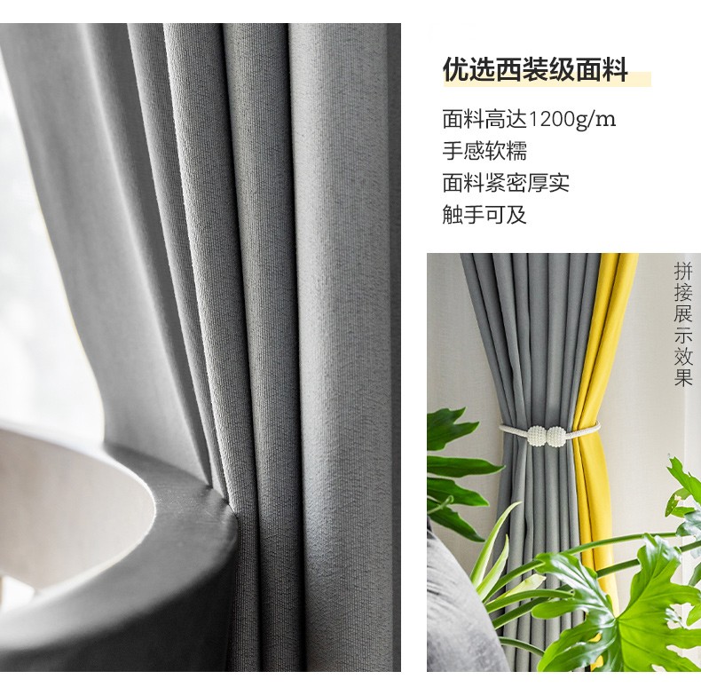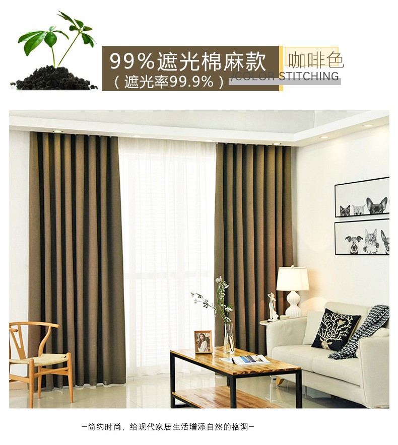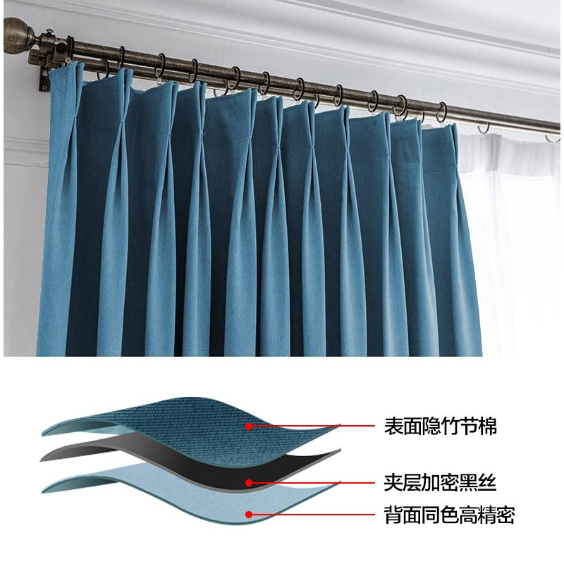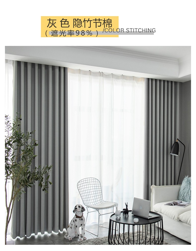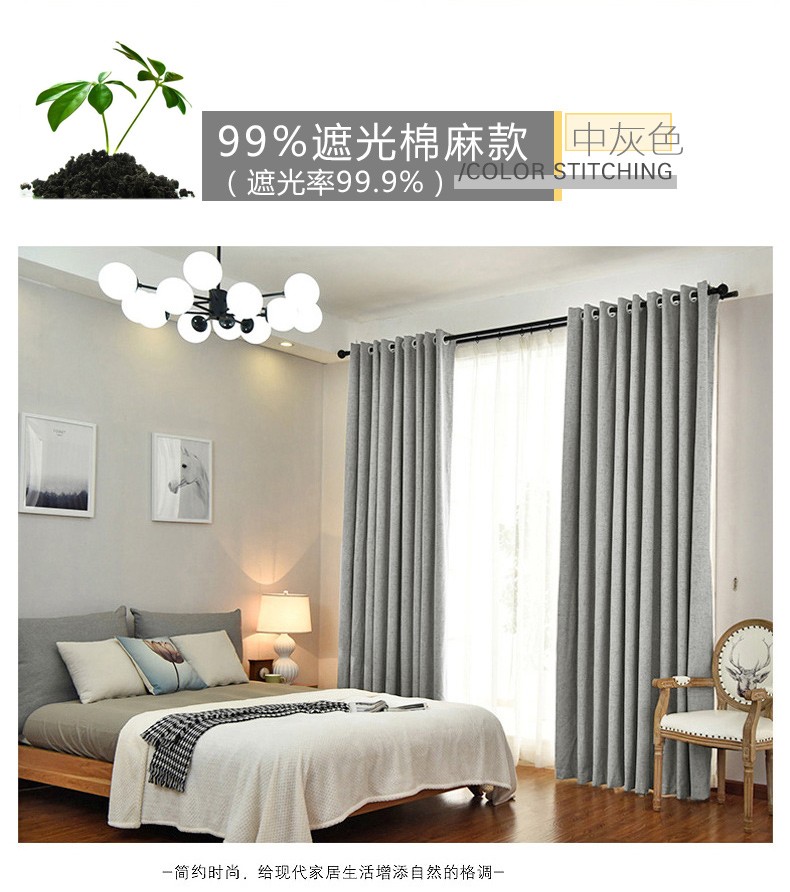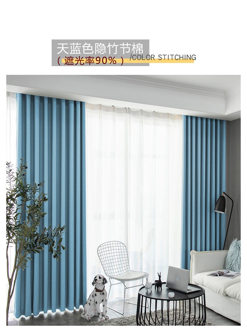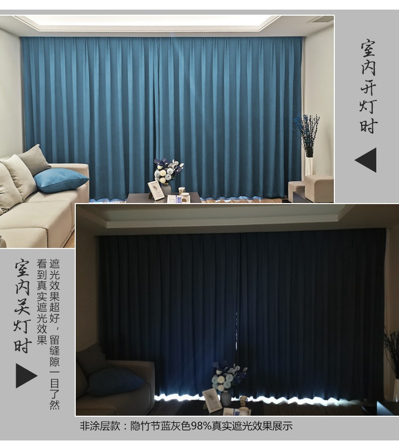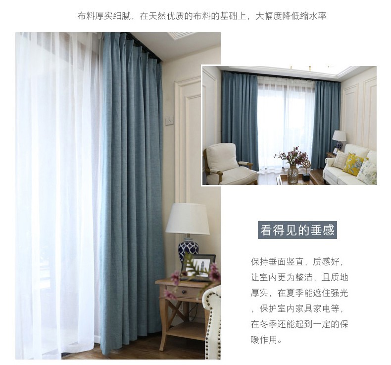 商品名称:灵水绣简约北欧风隐竹节棉麻质感全遮光遮阳窗帘布 现代客厅卧室飘窗阳台 隔音隔热加厚高遮光窗帘成品定制 98%遮光率-蓝灰色窗帘(加厚隐竹节款) 定制挂钩式1米(联系卖家)