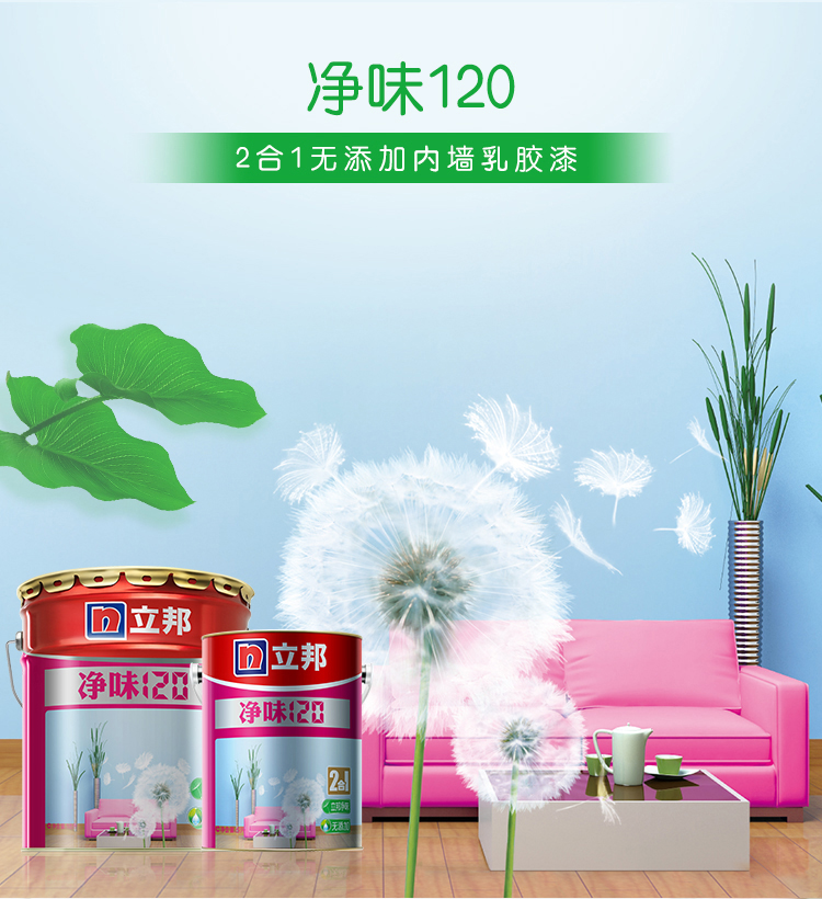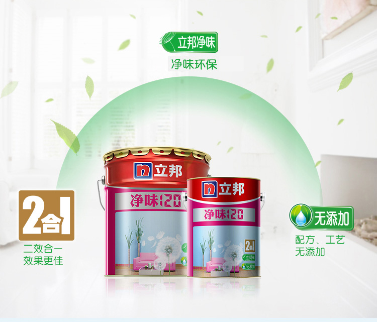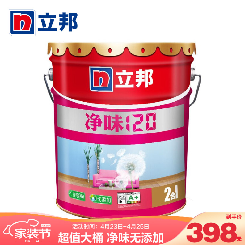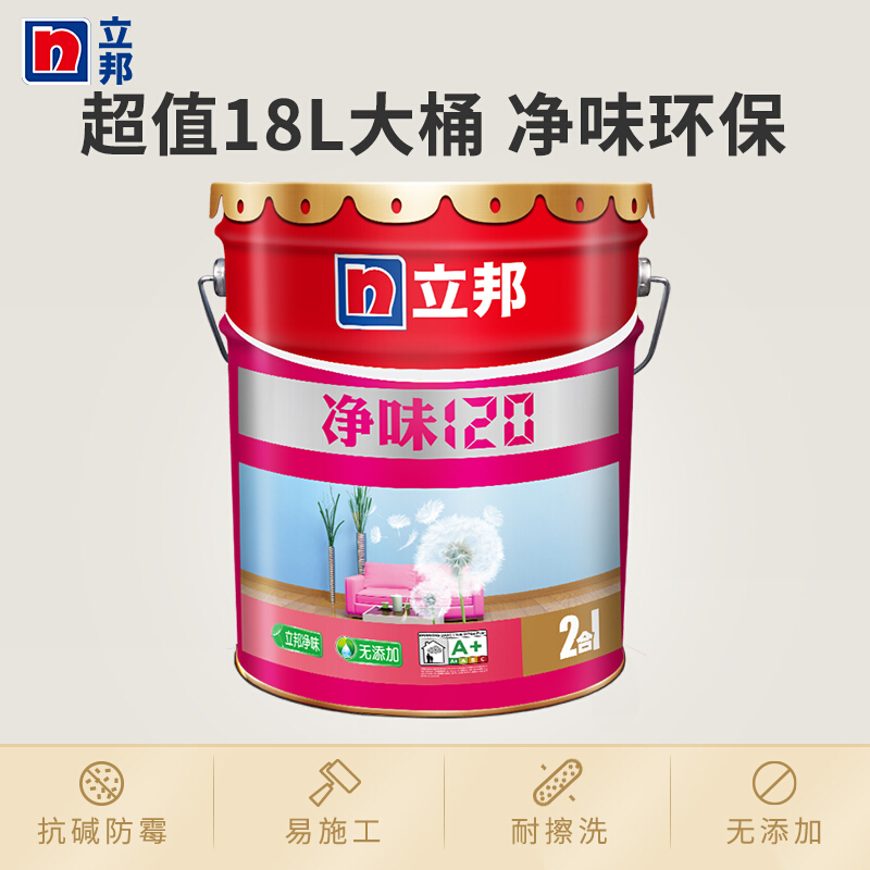 立邦漆 净味120二合一无添加油漆涂料内墙乳胶漆墙面漆18L