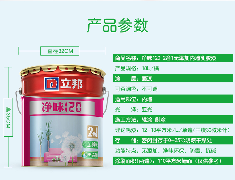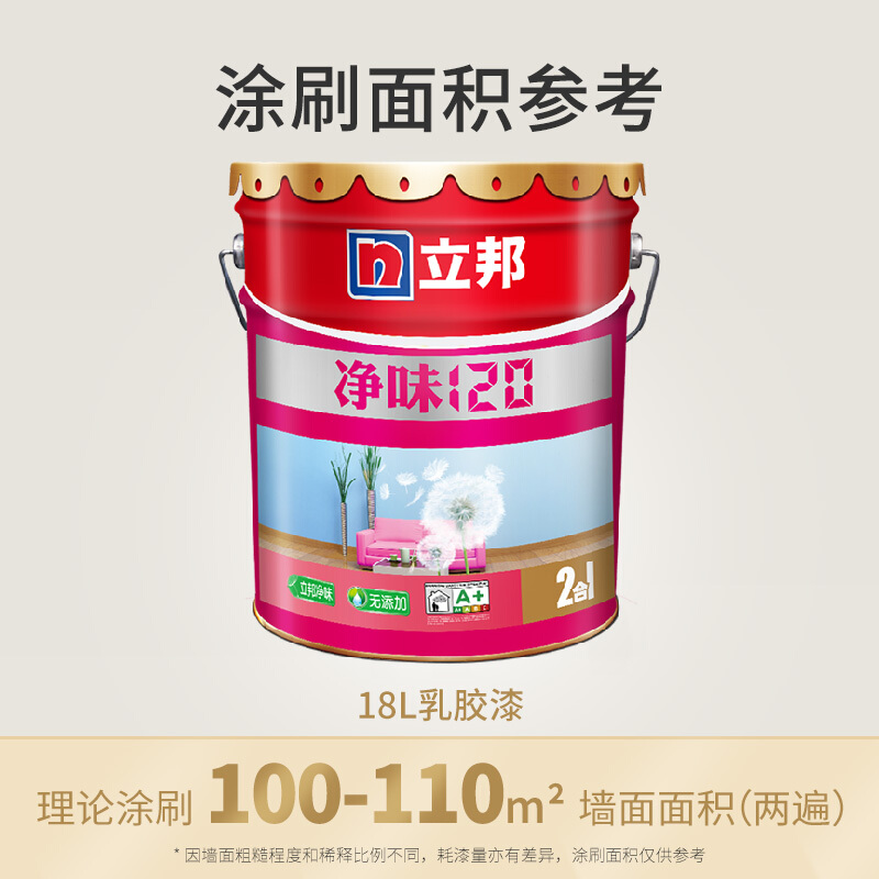 商品名称:立邦漆 净味120二合一无添加油漆涂料内墙乳胶漆墙面漆18L
