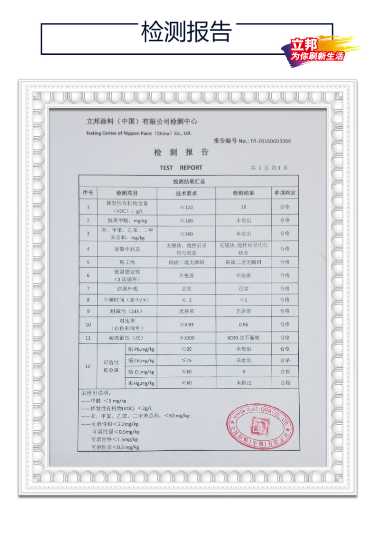 涂刷面积(㎡):108-117平米(2遍)因实际墙面不同实际耗漆量也不同