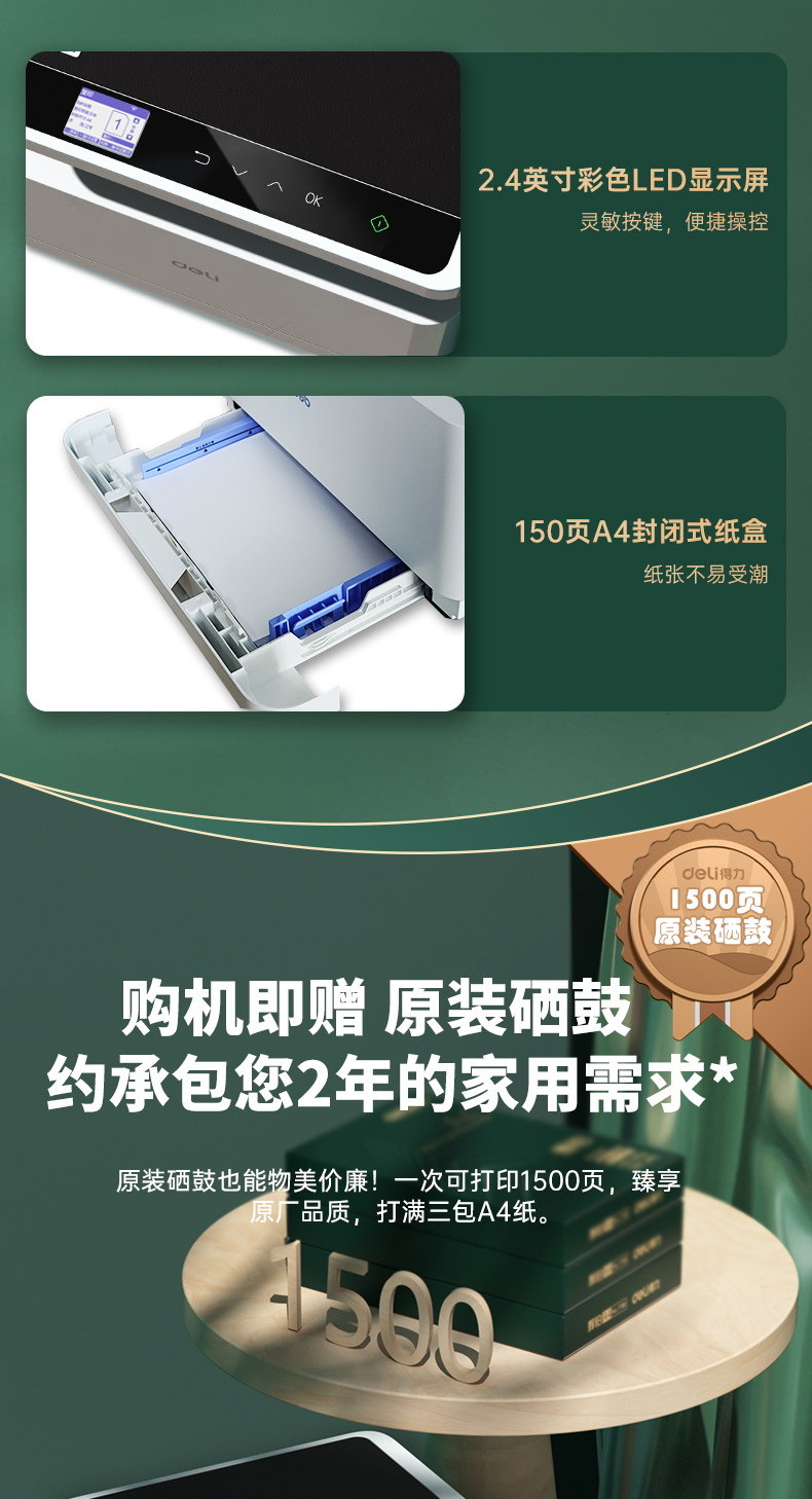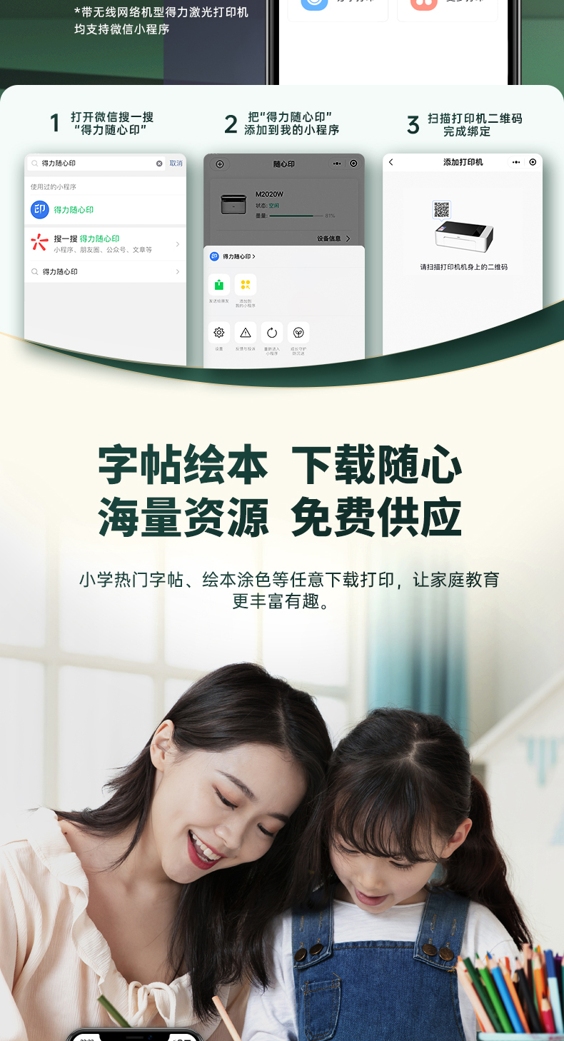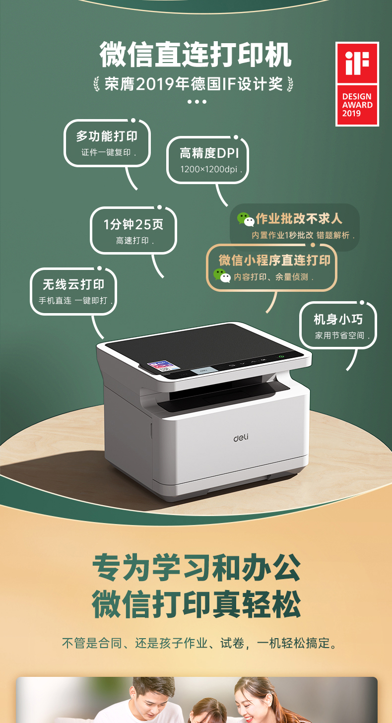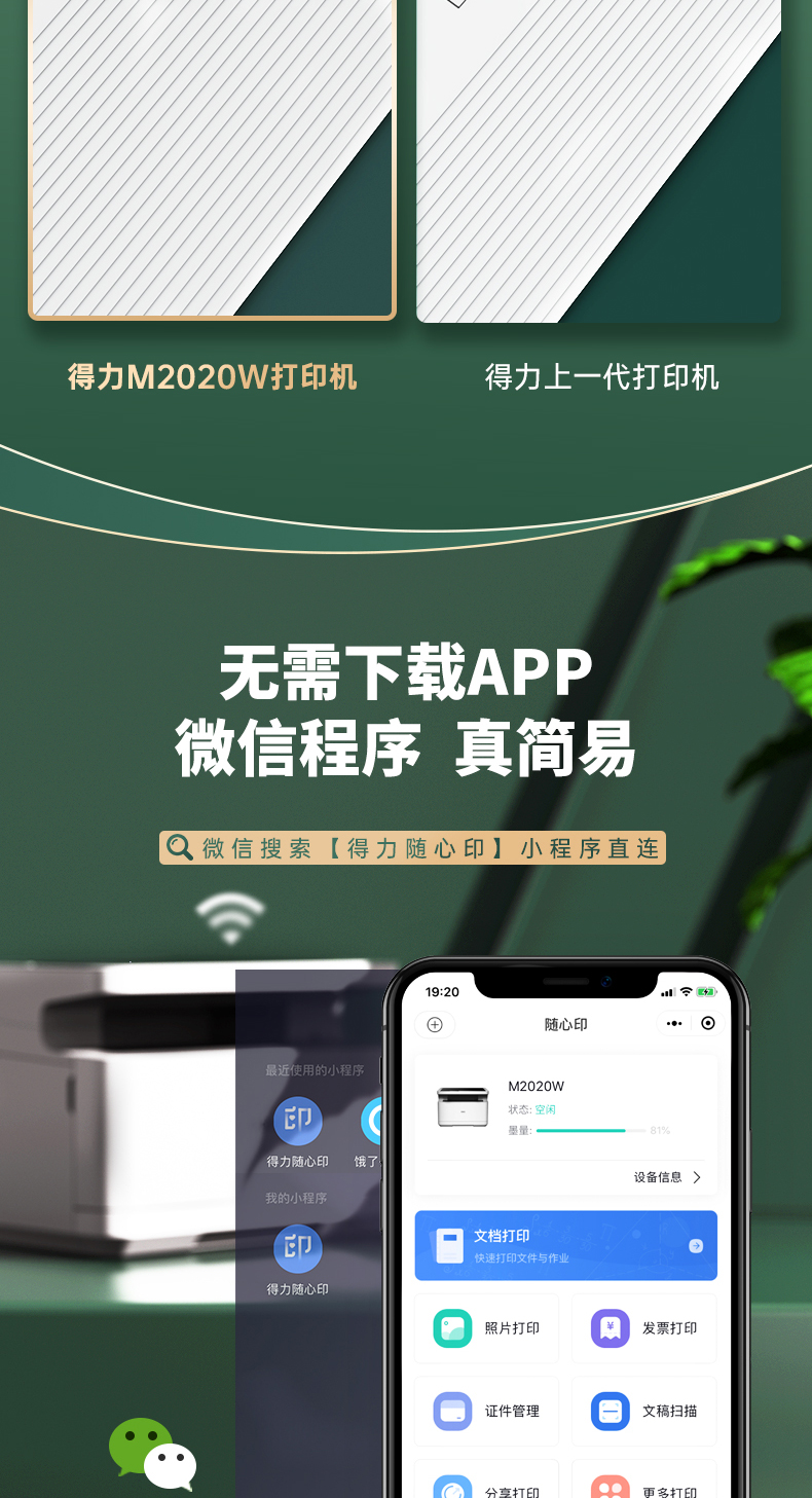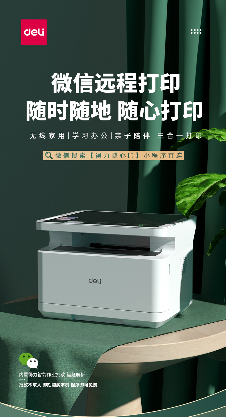 得力(deli)M2020W三合一云打系列黑白激光打印机 家用办公 微信小程序直连打印(云打印 复印 扫描)