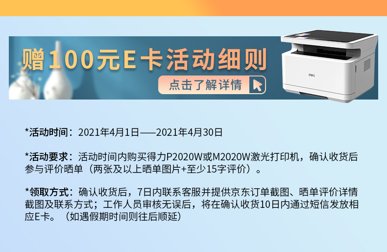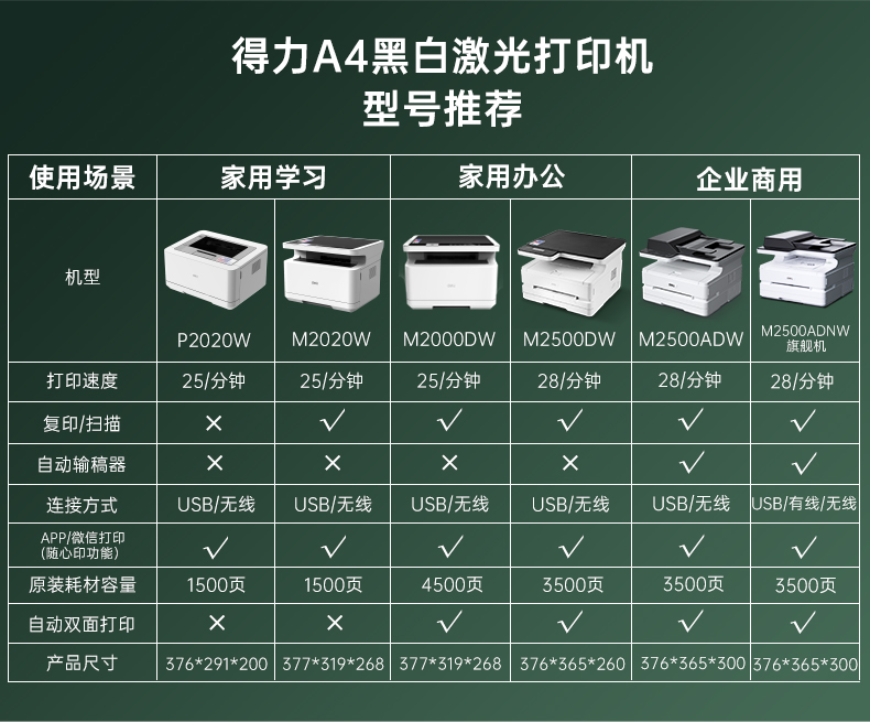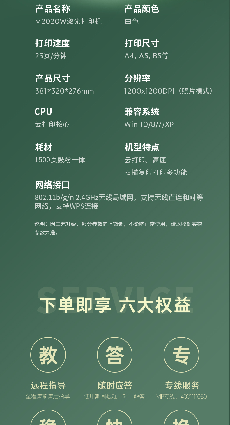 商品名称:得力(deli)M2020W三合一云打系列黑白激光打印机 家用办公 微信小程序直连打印(云打印 复印 扫描)