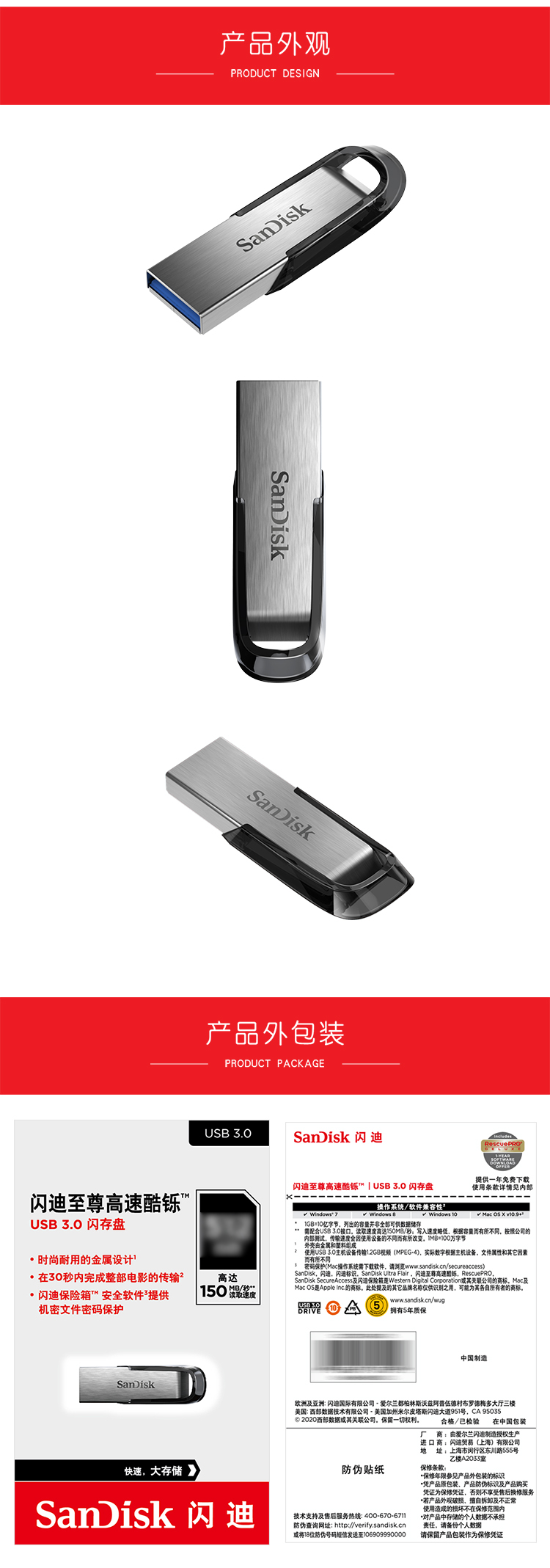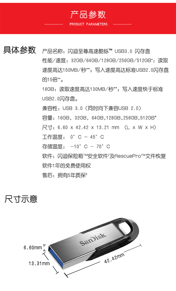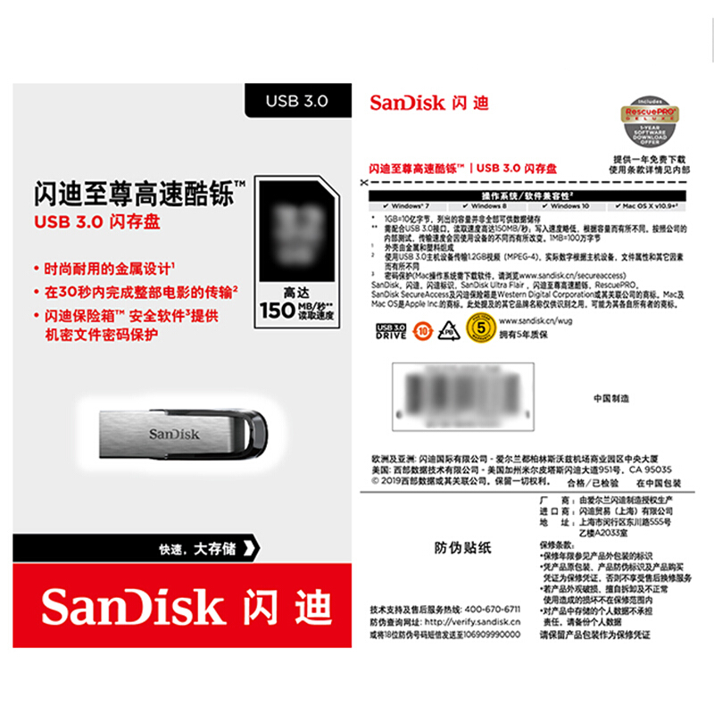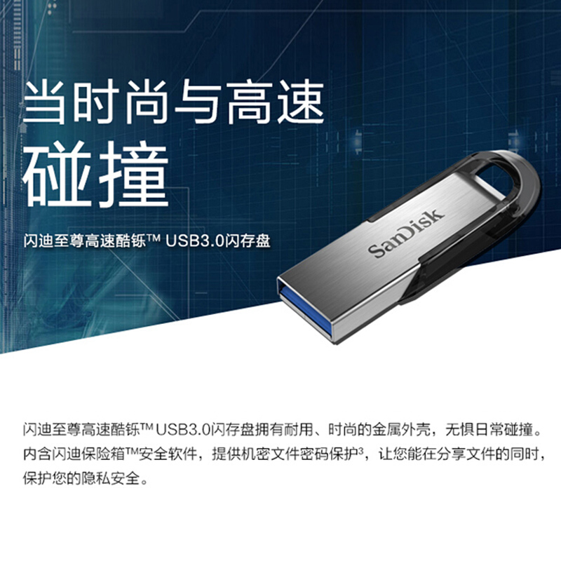 商品名称:闪迪(SanDisk)64GB USB3.0 U盘 CZ73酷铄 银色 读速150MB/s 金属外壳 内含安全加密软件