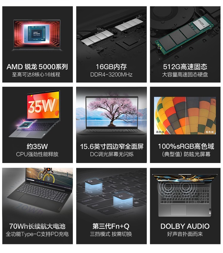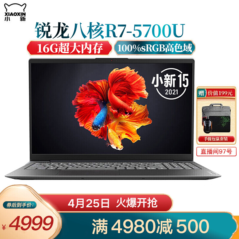 商品名称:联想小新15 超轻薄笔记本电脑 高色域全面屏 学生网课办公 设计师游戏本 八核锐龙R7-5700U 16G内存 512G固态 升级15.6英寸IPS全面屏【DC调光护眼无闪烁】