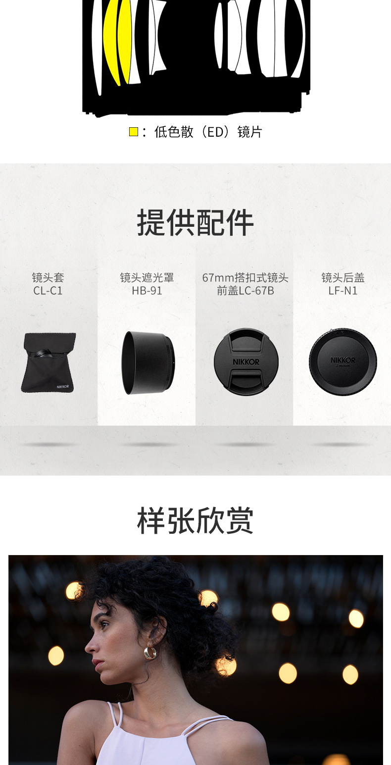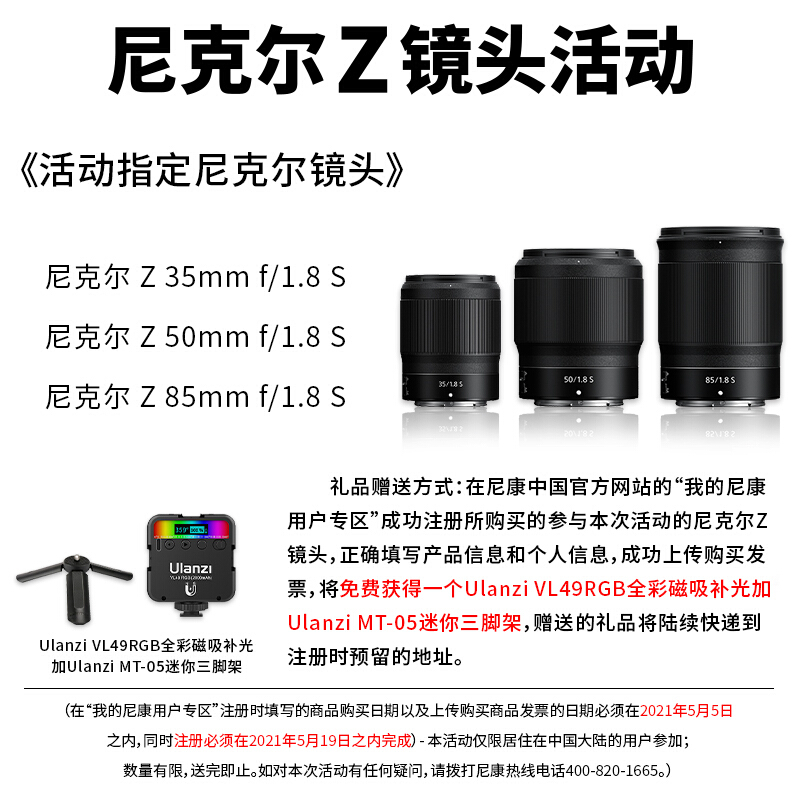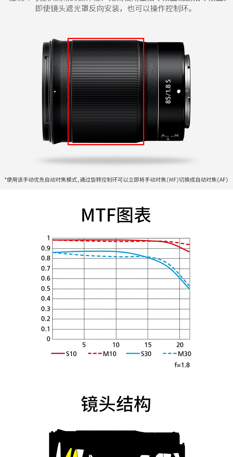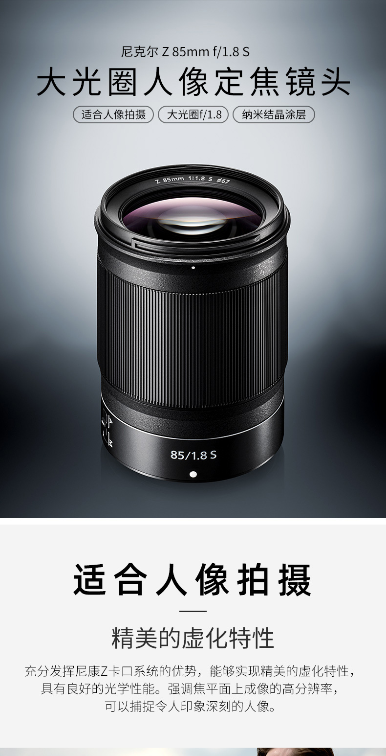 商品名称:尼康(Nikon)尼克尔 Z卡口 全画幅Z6/Z7/Z5微单镜头 Z 50mm f/1.8 S 大光圈定焦镜头 标配送高清UV滤镜