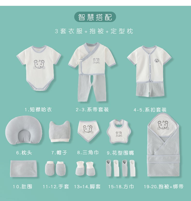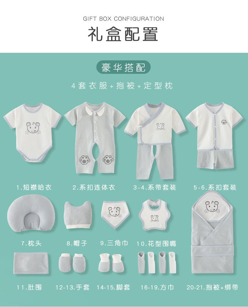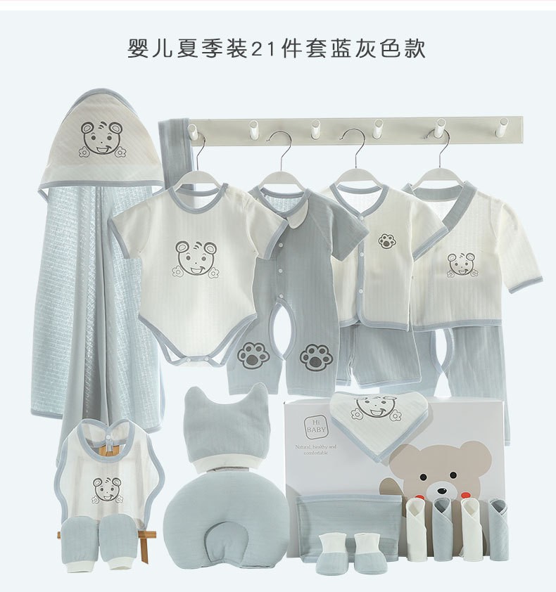 商品名称:巴克龙纯棉婴儿礼盒套装新生儿礼物满月送礼宝宝服装薄款刚出生用品高档春夏季百日宝宝用品大全连体服爬行服 21件夏季蓝 66cm(4-6个月)