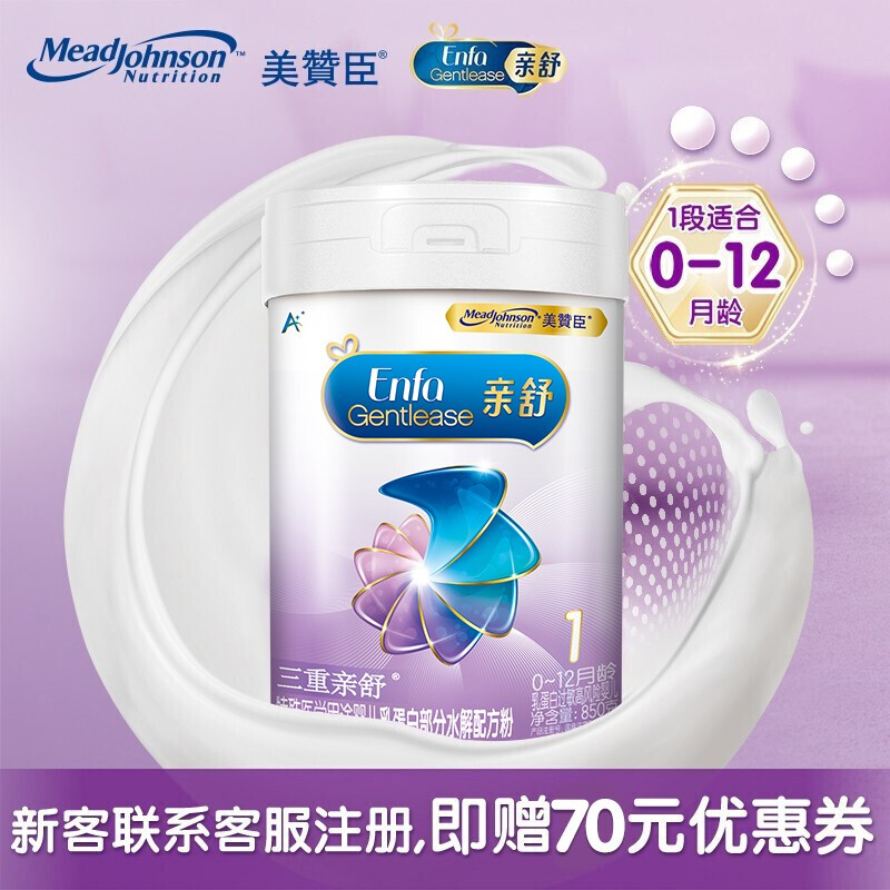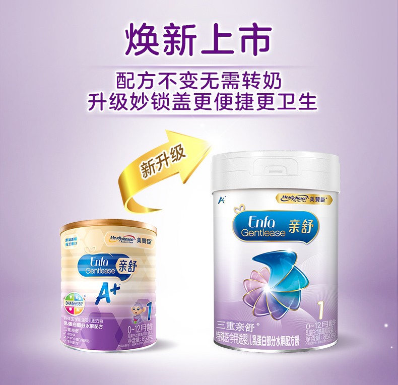 商品名称:美赞臣A+亲舒婴儿配方奶粉 1段850g(0-12个月) 原装进口 乳蛋白部分水解 新旧包装随机发货