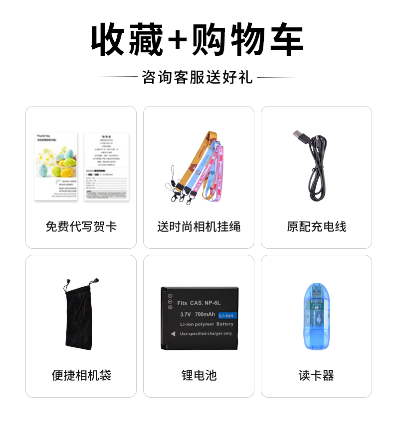 包装清单:相机*1 电池*1 充电线*1 充电头* 手机袋*1 说明书*1