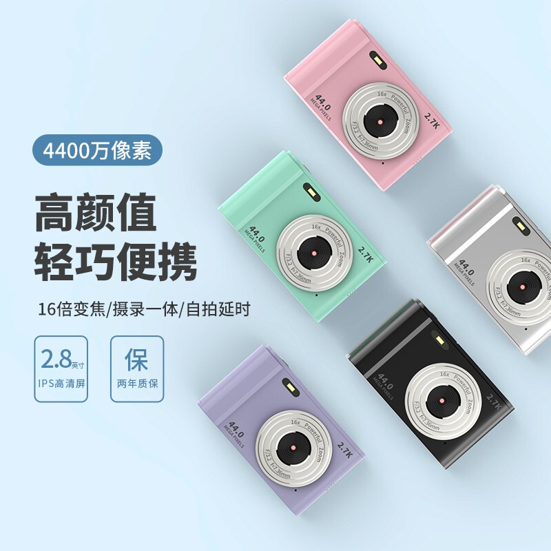 初步 数码相机学生入门级高清CCD卡片照相机随身旅游便携轻薄相机 星际黑 【青春版】2.4寸液晶屏+32G内存卡