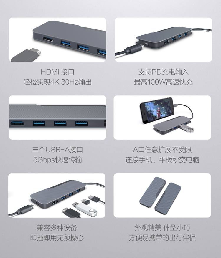 小新USB-C 五合一多功能扩展坞(4K30HZ)