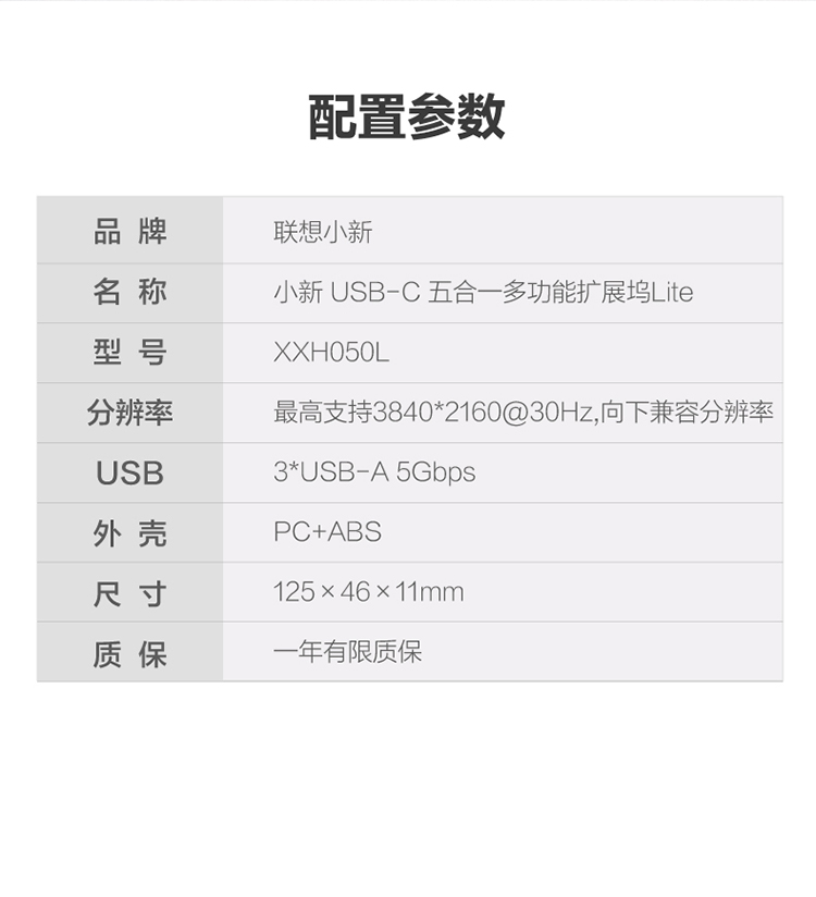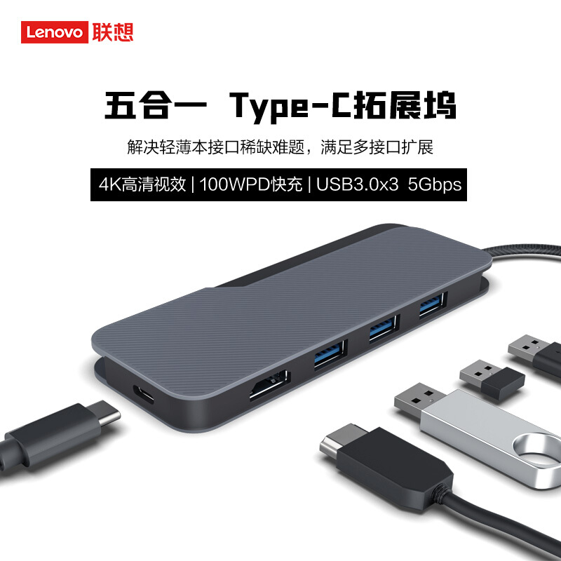 商品名称:联想小新USB-C 五合一多功能扩展坞(4K30HZ)