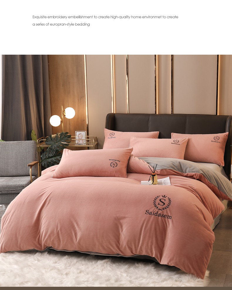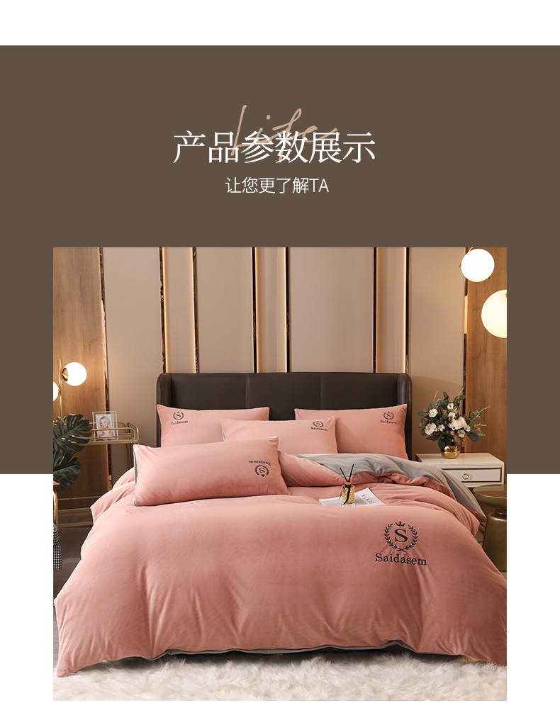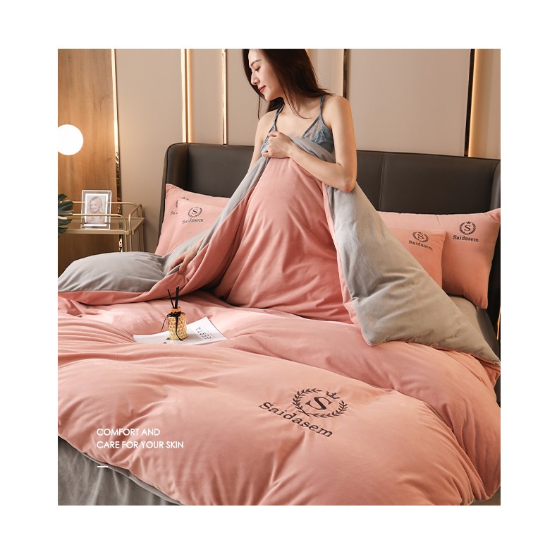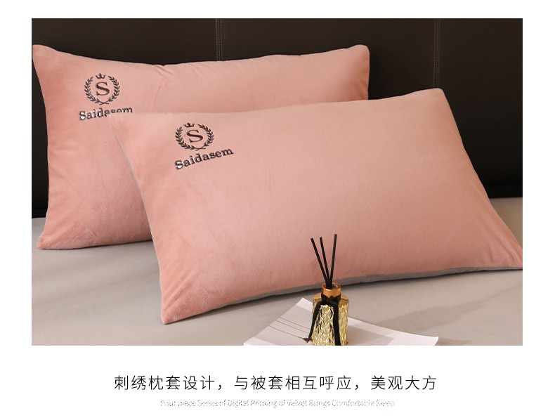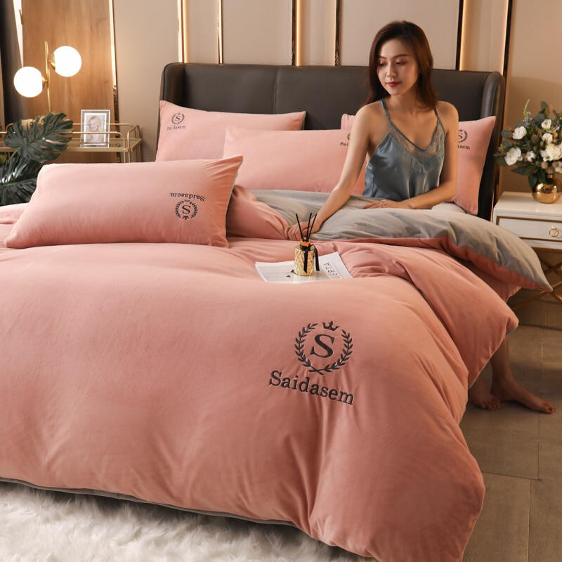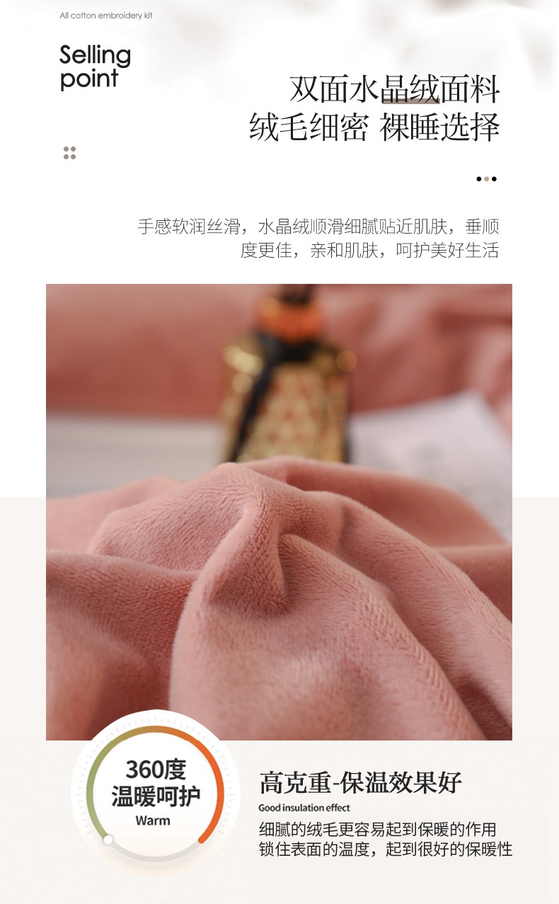 南极人牛奶绒四件套冬季珊瑚绒加厚双面法兰绒床单加绒被套床笠毛绒床上用品套件 水晶绒皇冠-浅豆沙RY 1.8米床【床单款四件套】适合200x230被芯