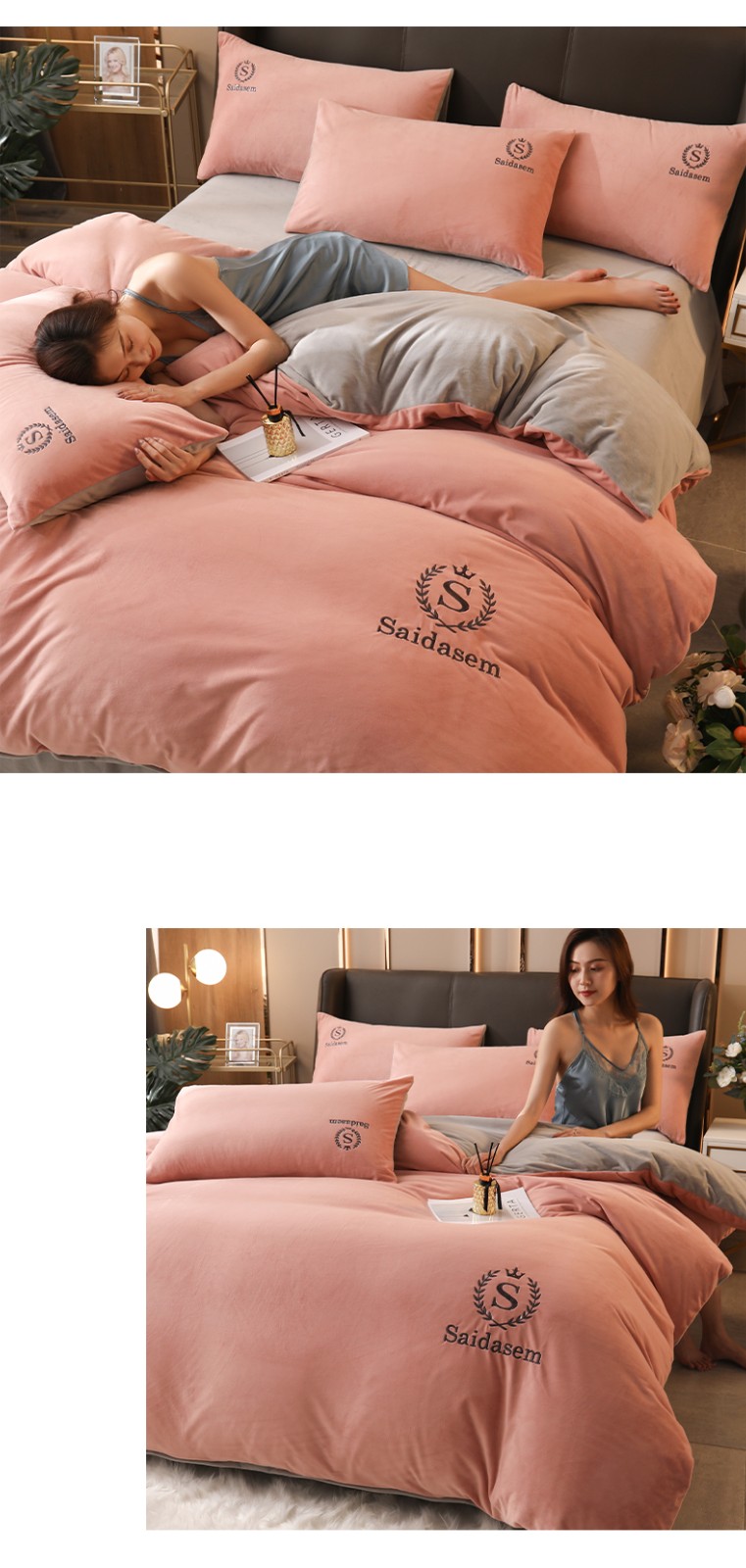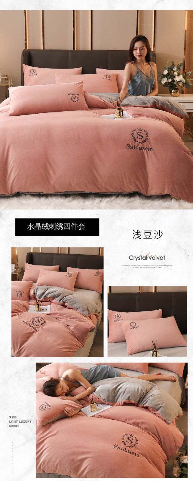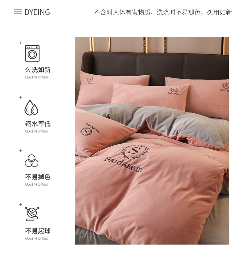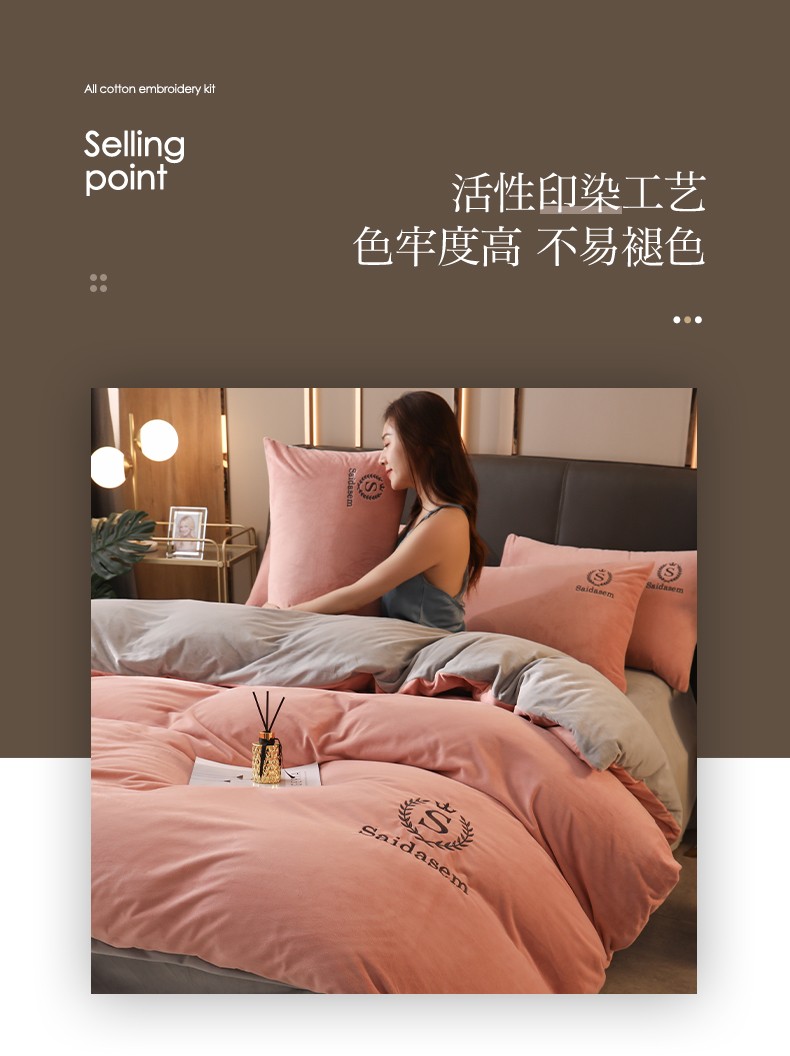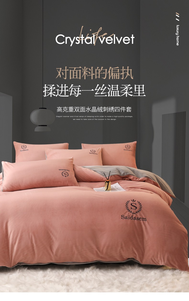 南极人牛奶绒四件套冬季珊瑚绒加厚双面法兰绒床单加绒被套床笠毛绒床上用品套件 水晶绒皇冠-浅豆沙RY 1.8米床【床单款四件套】适合200x230被芯