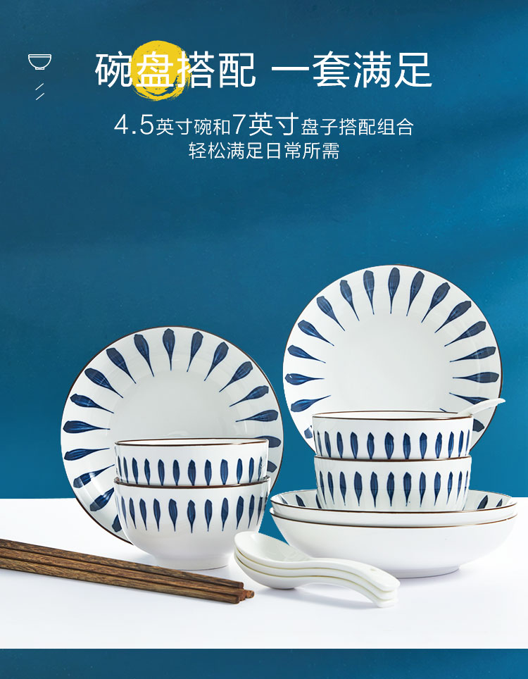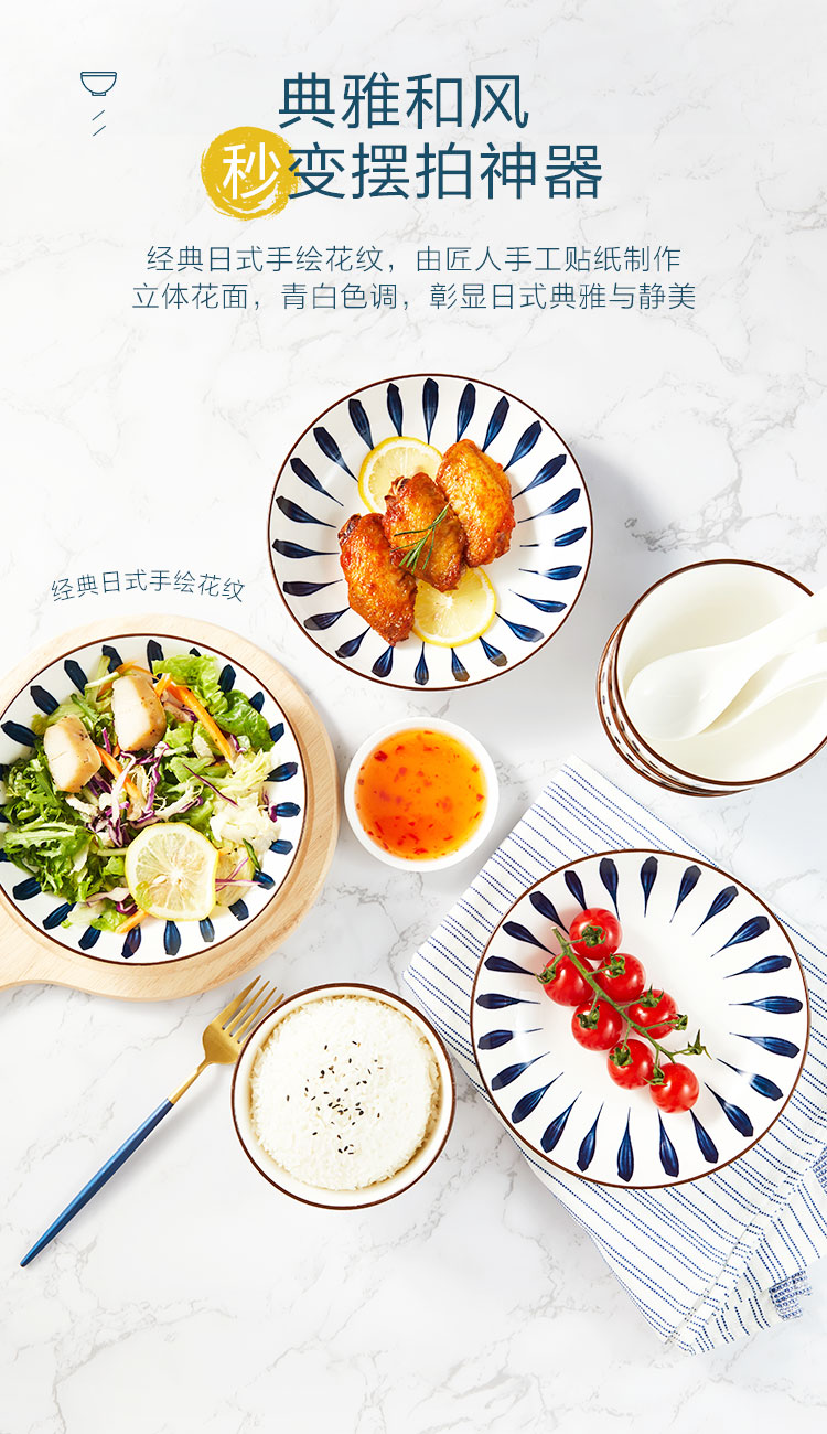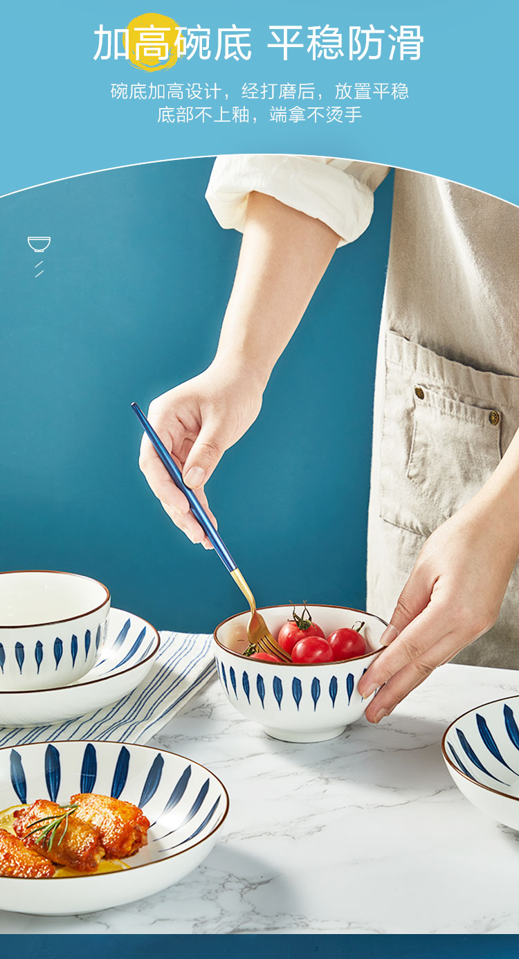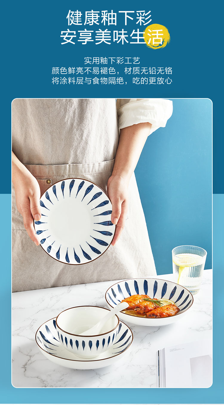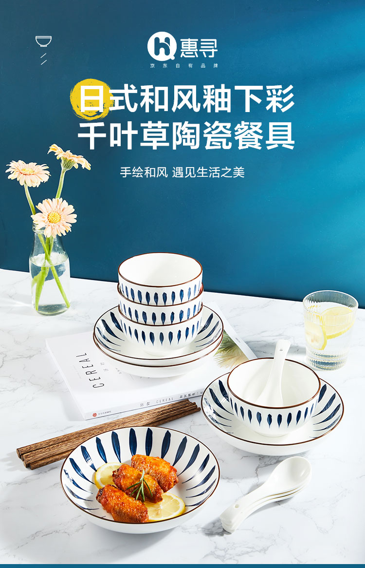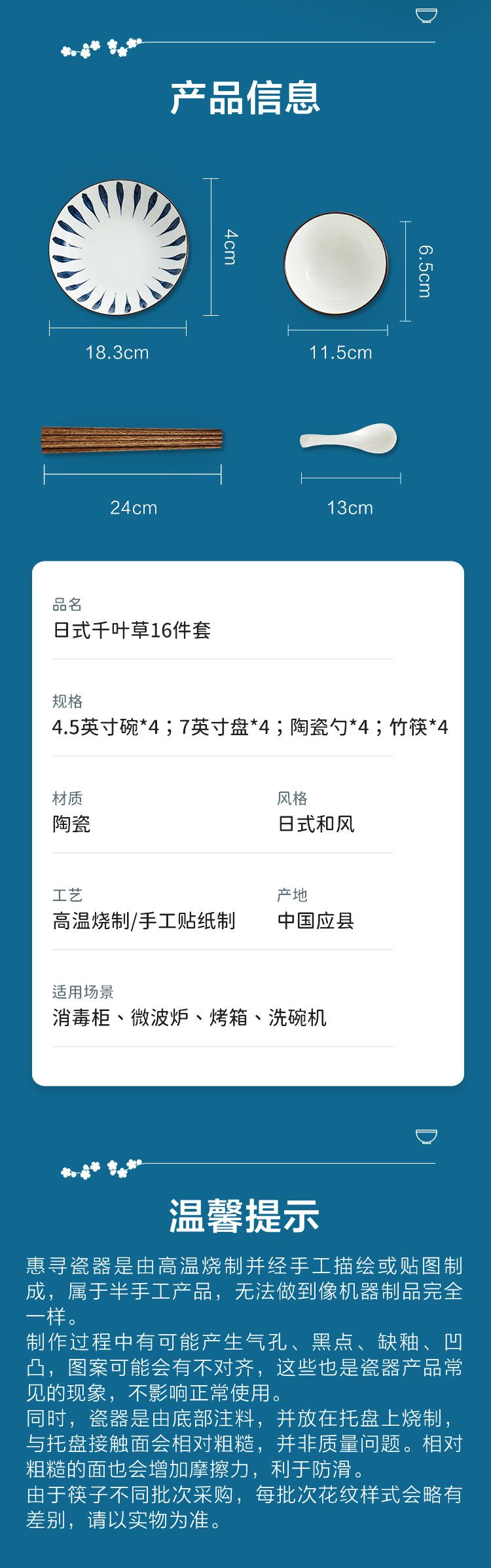 商品名称:惠寻16件套日式和风釉下彩千叶草陶瓷餐具套装碗碟套装