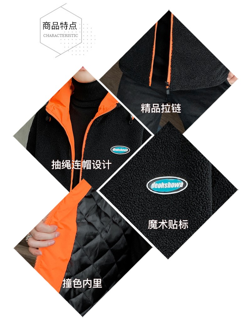 商品名称:花花公子棉衣男秋冬季新款潮流百搭羊羔绒加绒加厚防风保暖外套绵袄子夹克中青年学生上衣服男装男士 深灰 XL