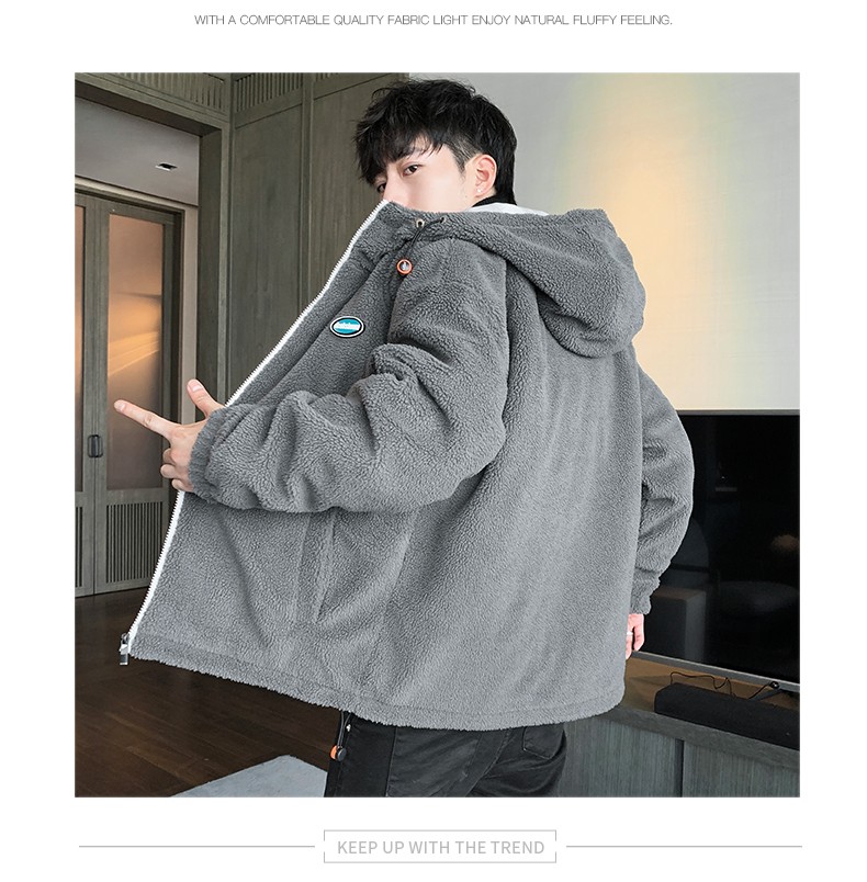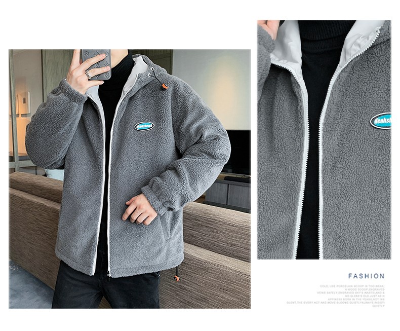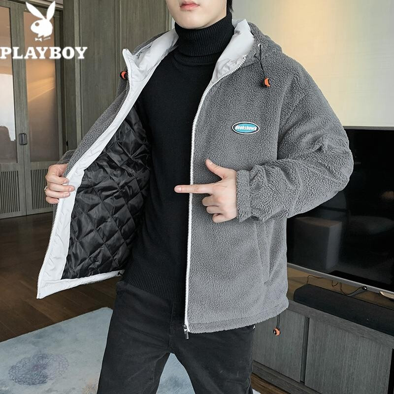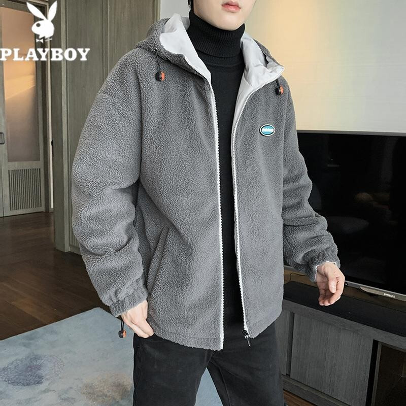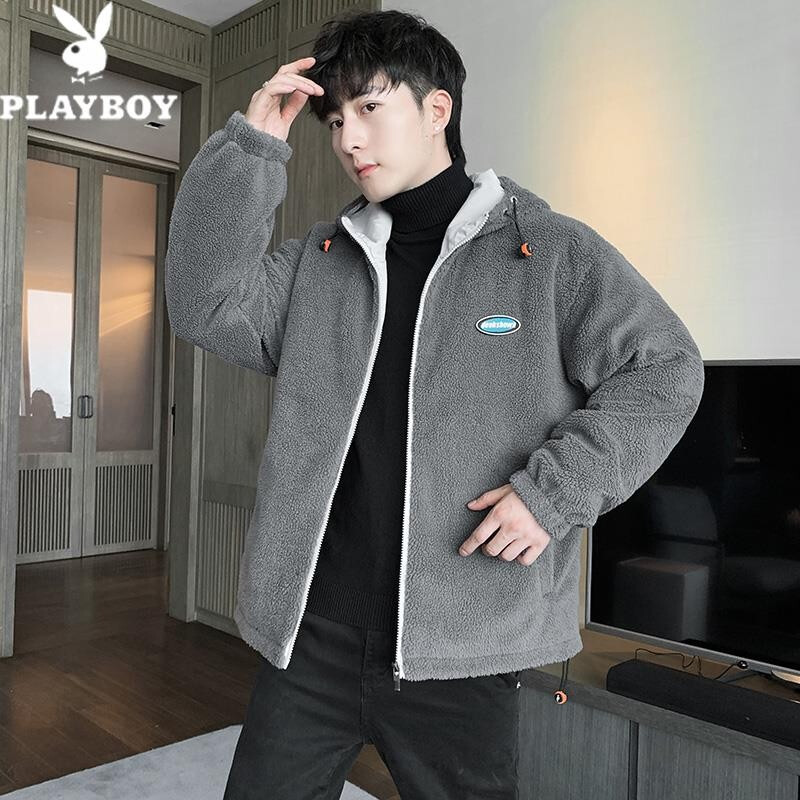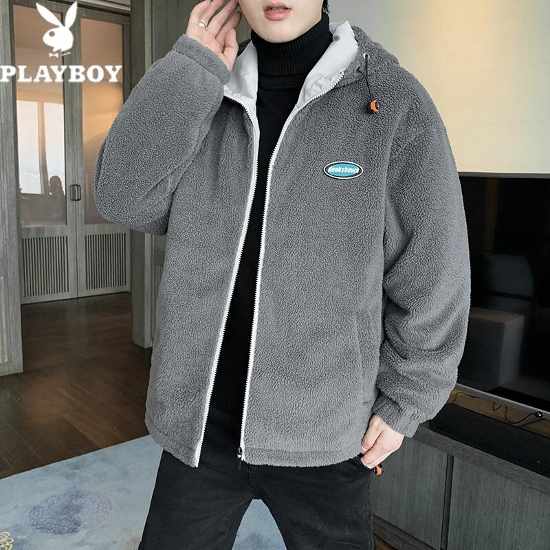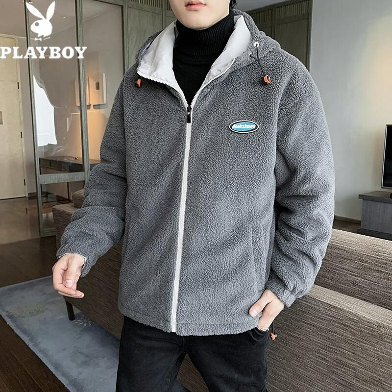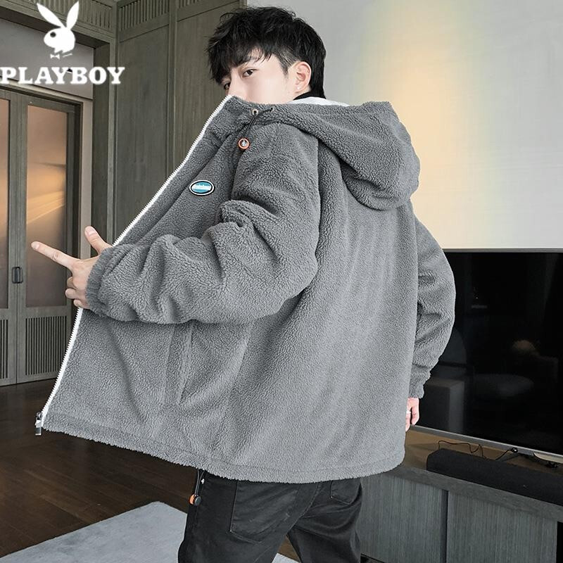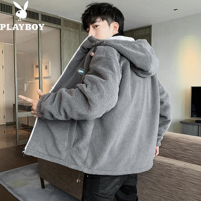 花花公子棉衣男秋冬季新款潮流百搭羊羔绒加绒加厚防风保暖外套绵袄子夹克中青年学生上衣服男装男士 深灰 XL
