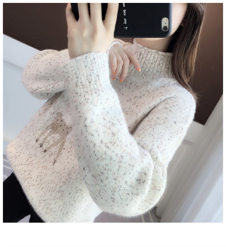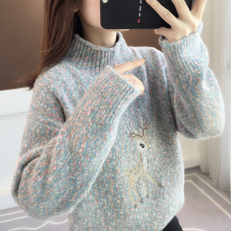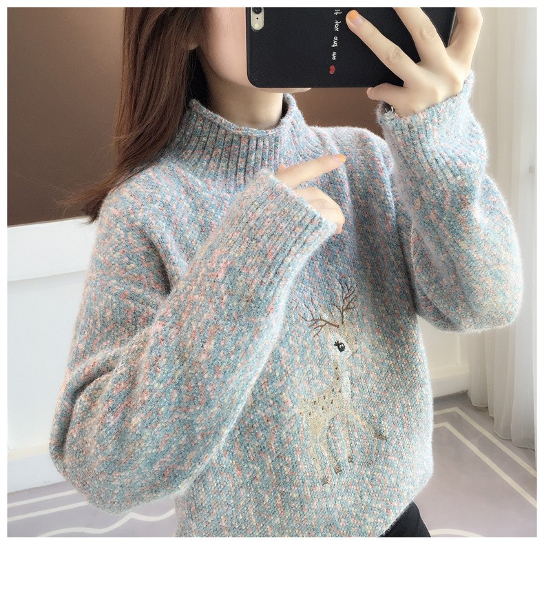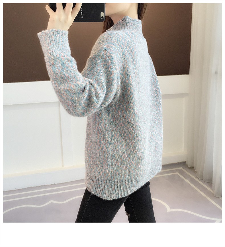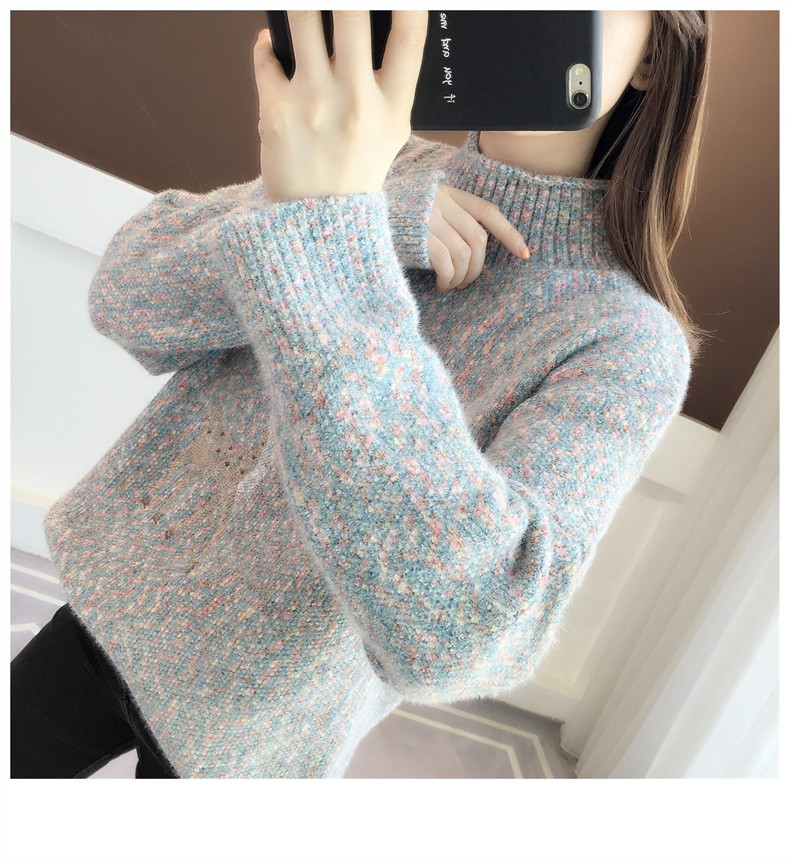 商品名称:纯迩雪尼尔半高领毛衣女2021年冬季新款针织衫女宽松外穿慵懒秋冬加厚女装打底上衣013 花米色 L