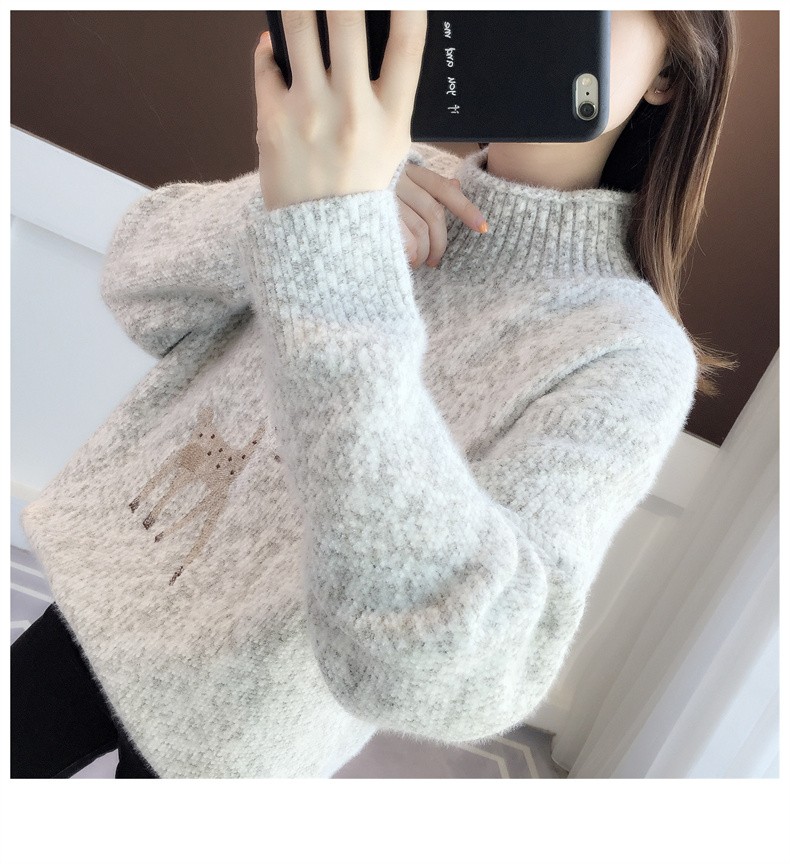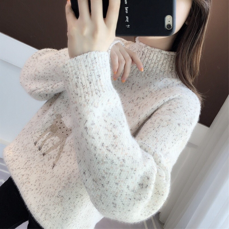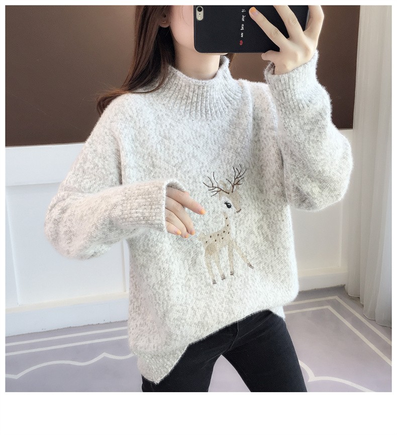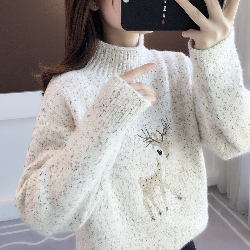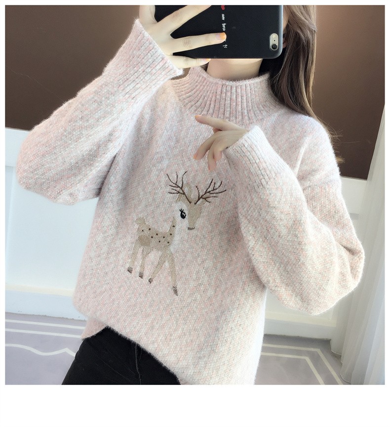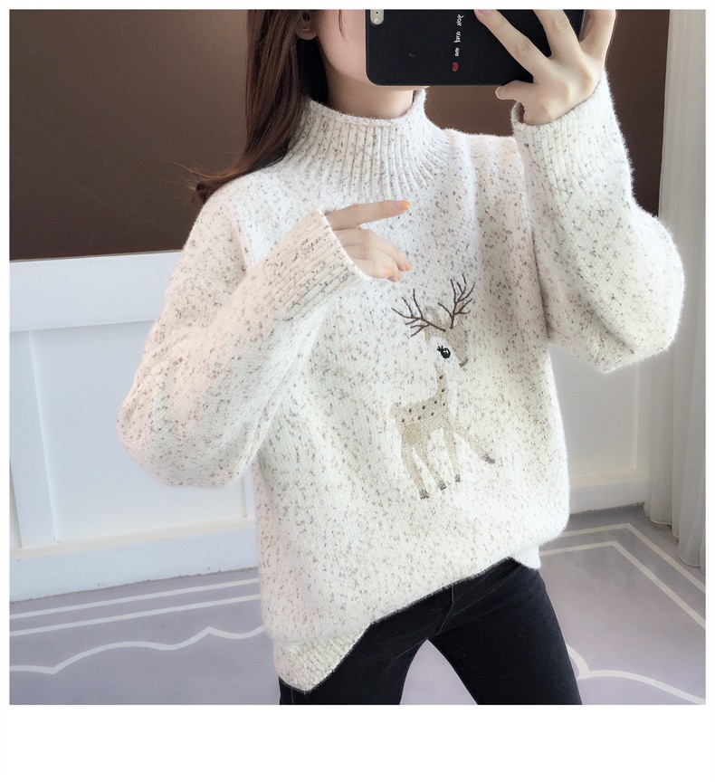 商品名称:纯迩雪尼尔半高领毛衣女2021年冬季新款针织衫女宽松外穿慵懒秋冬加厚女装打底上衣013 花米色 L
