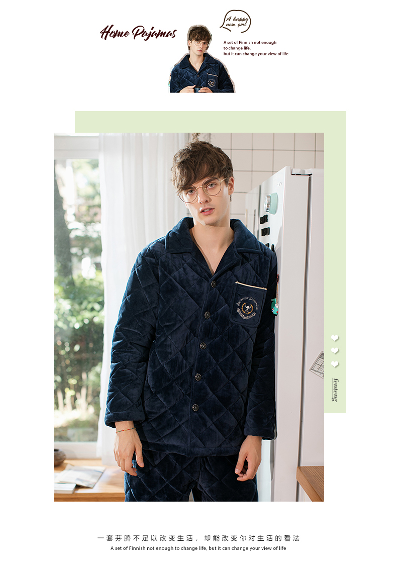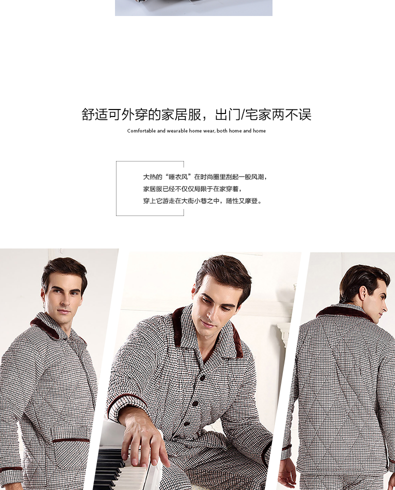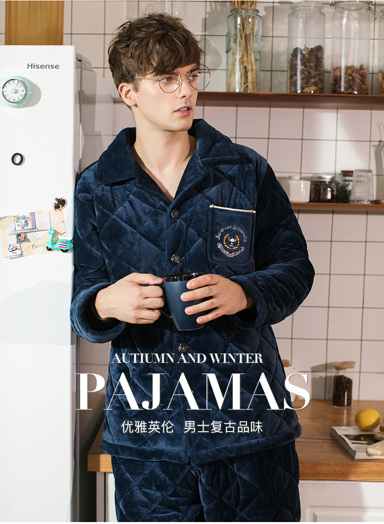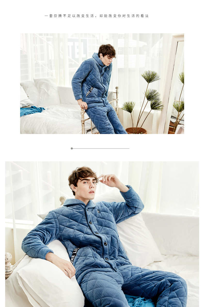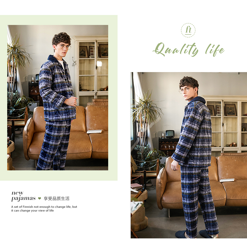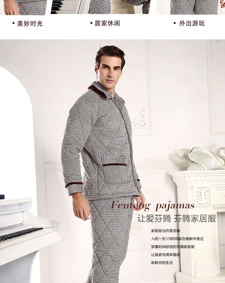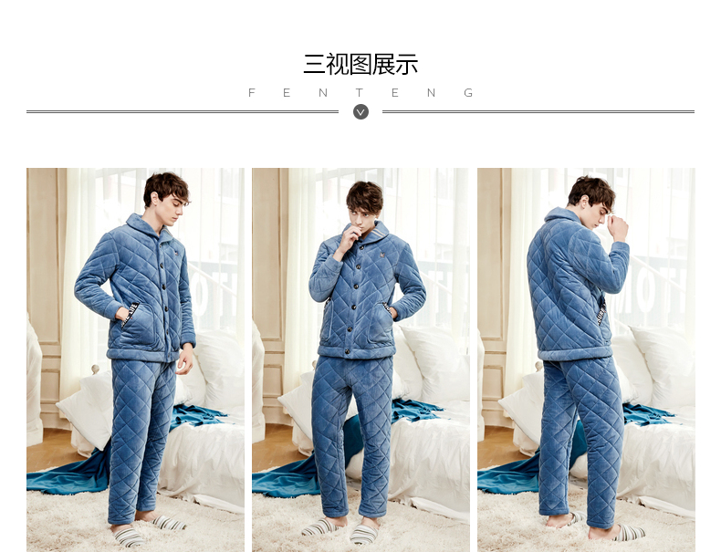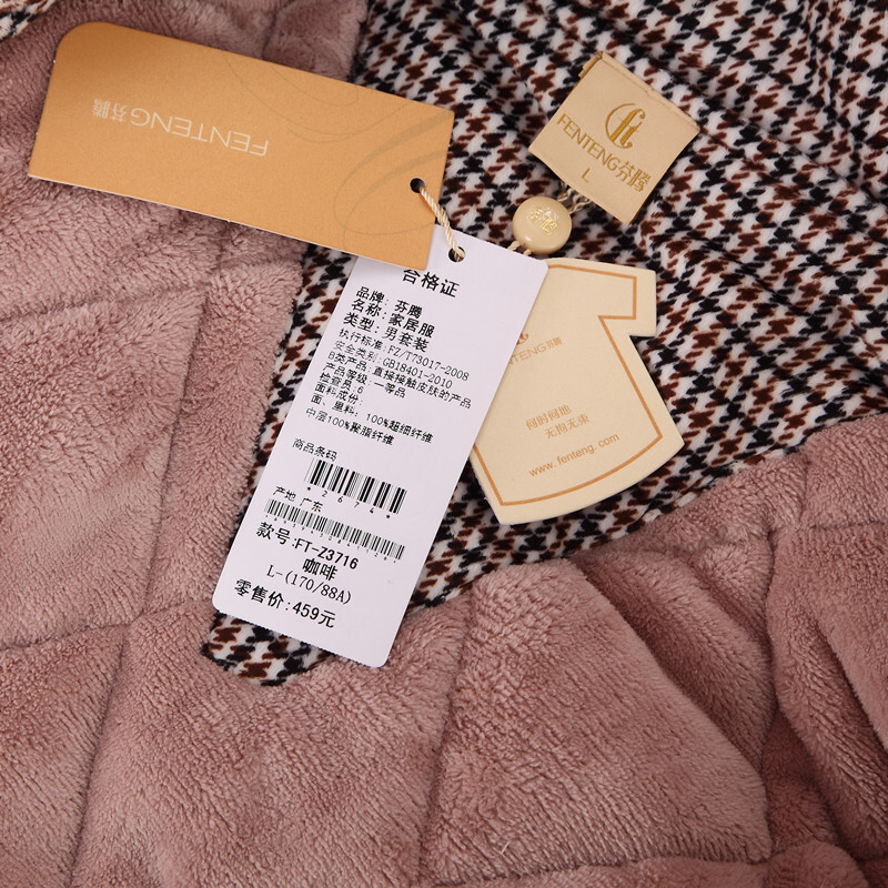 商品名称:芬腾 夹棉睡衣男珊瑚绒三层加厚冬季新品法兰绒加绒长袖开衫秋冬天保暖家居服套装 咖啡 XL