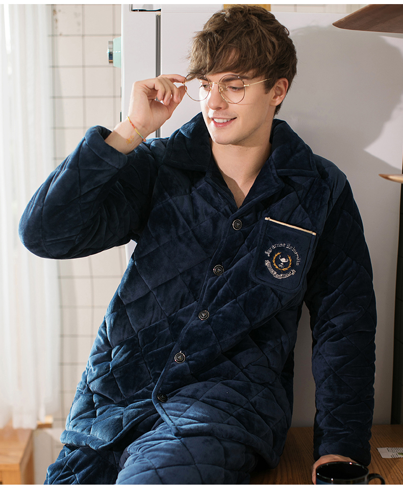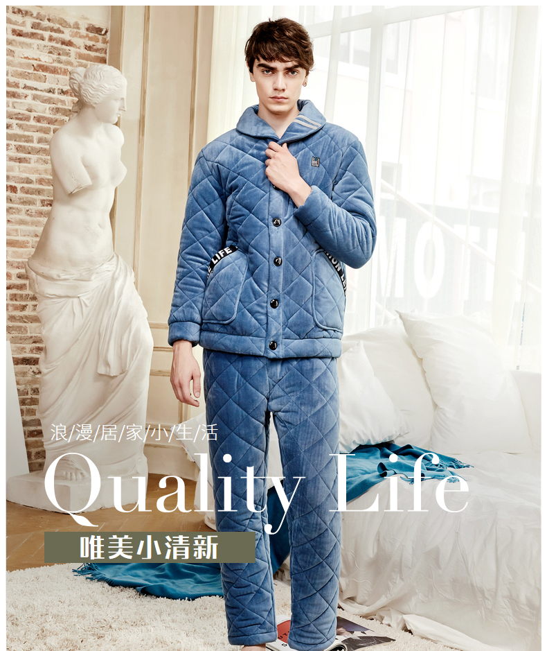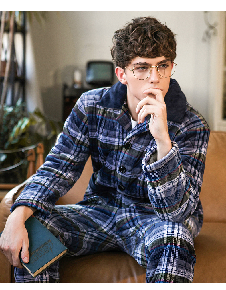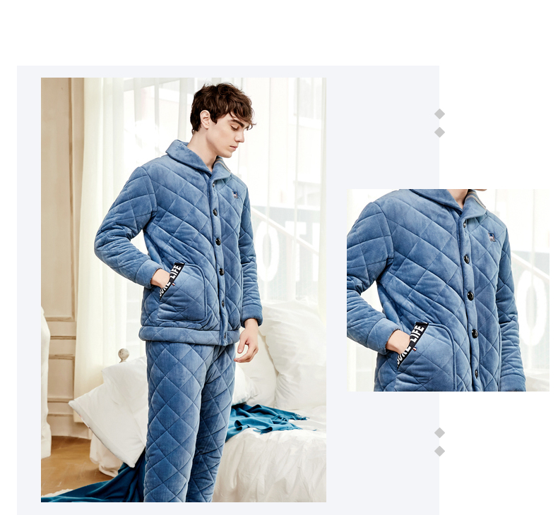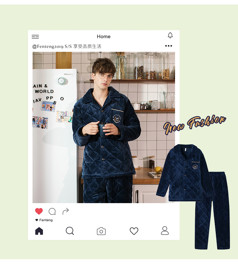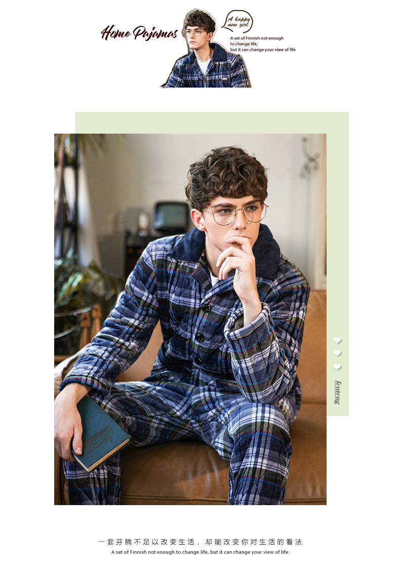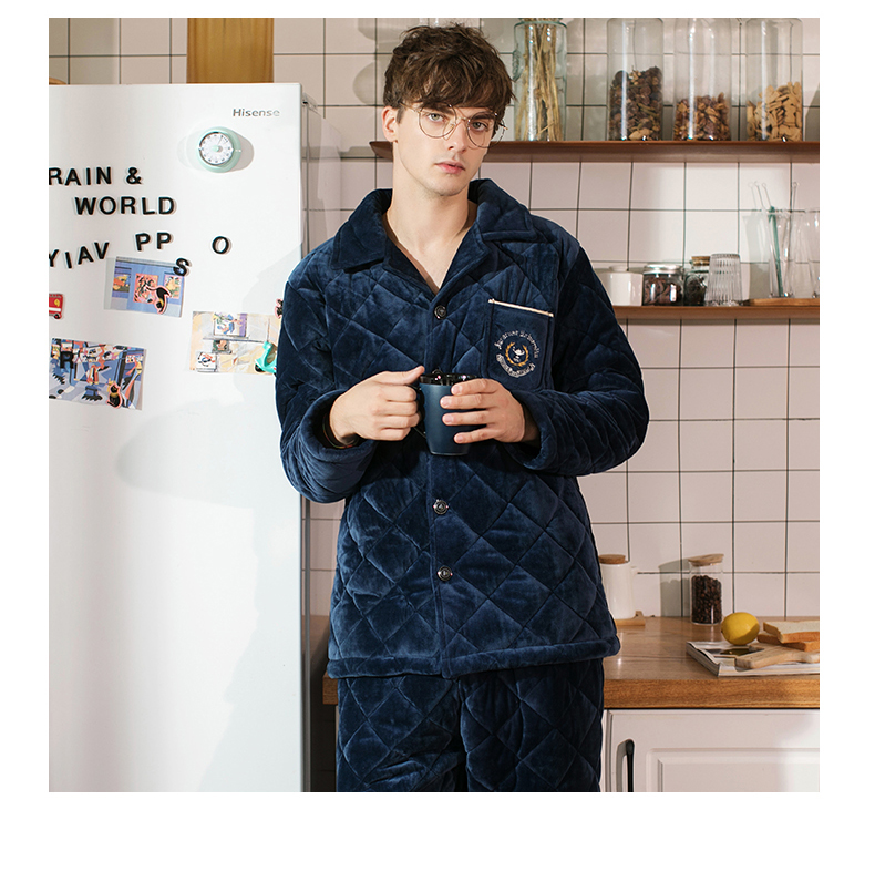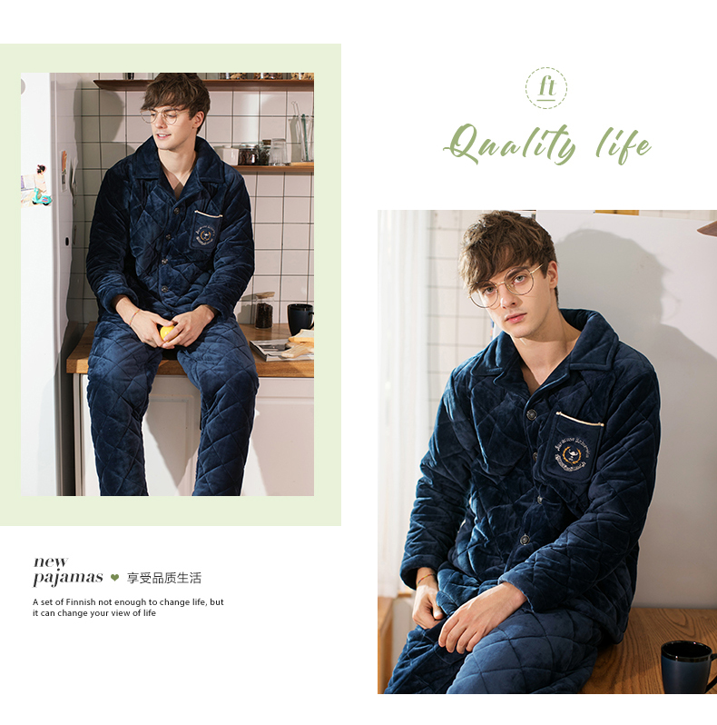 商品名称:芬腾 夹棉睡衣男珊瑚绒三层加厚冬季新品法兰绒加绒长袖开衫秋冬天保暖家居服套装 咖啡 XL