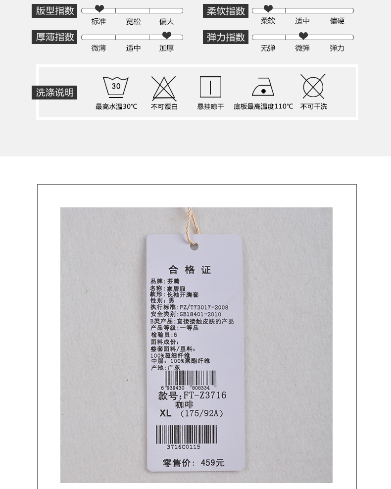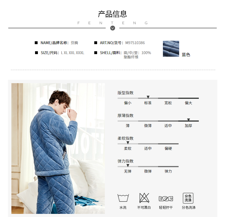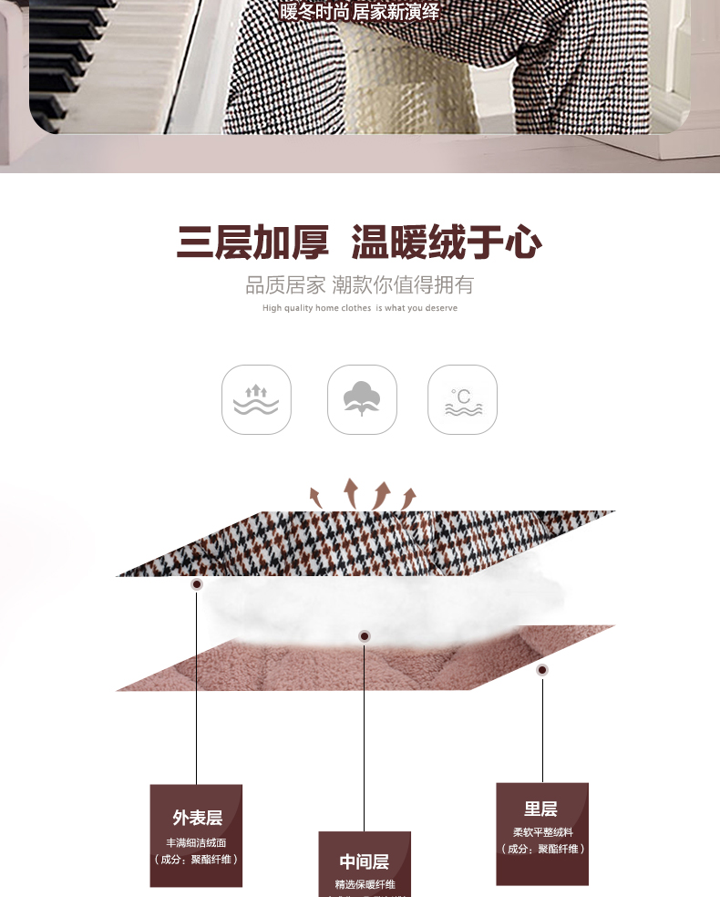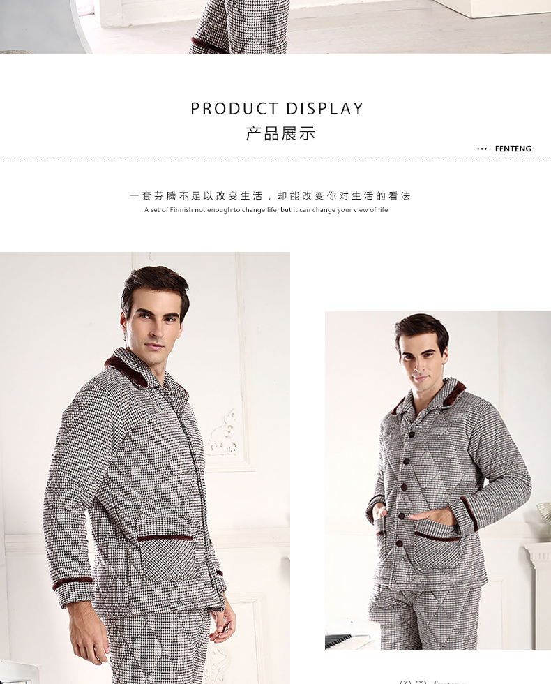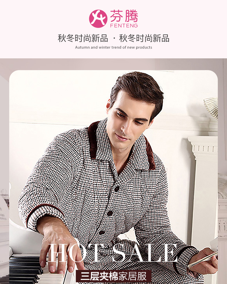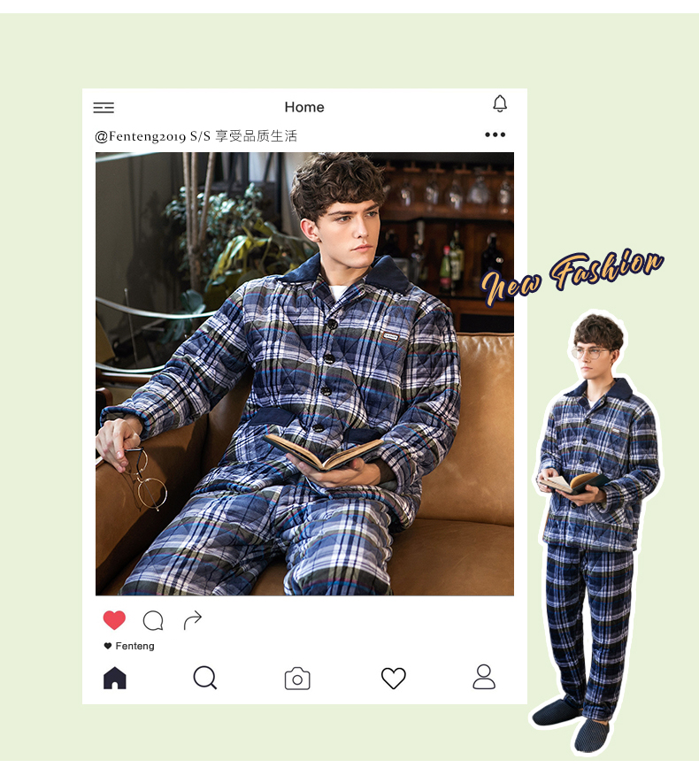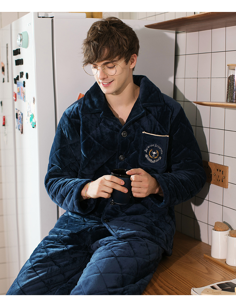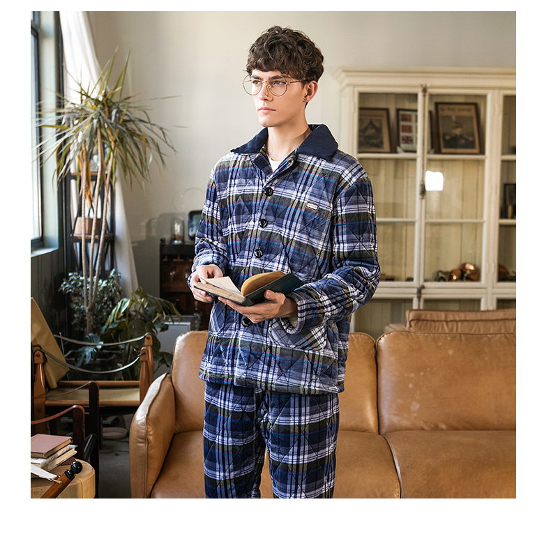 商品名称:芬腾 夹棉睡衣男珊瑚绒三层加厚冬季新品法兰绒加绒长袖开衫秋冬天保暖家居服套装 咖啡 XL