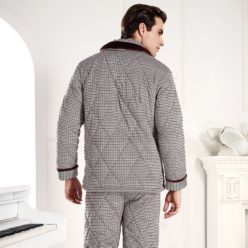 芬腾 夹棉睡衣男珊瑚绒三层加厚冬季新品法兰绒加绒长袖开衫秋冬天保暖家居服套装 咖啡 XL