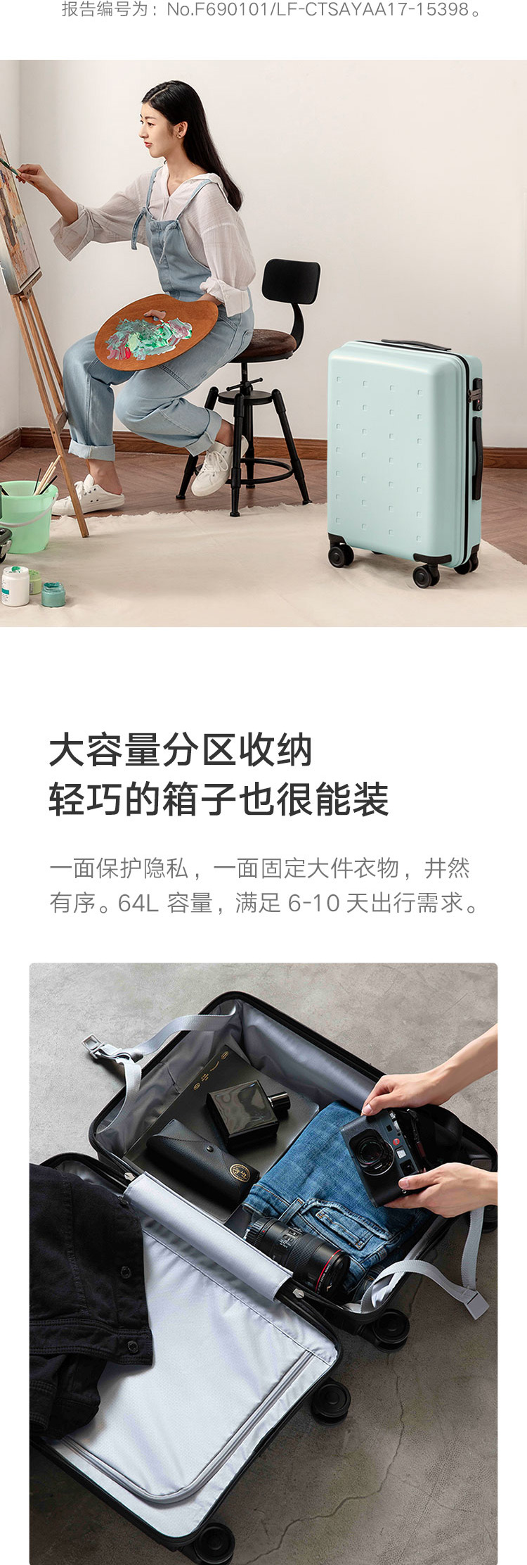 包装清单:旅行箱1个,吊牌1个,说明书1个,干燥剂1个