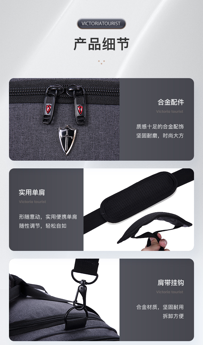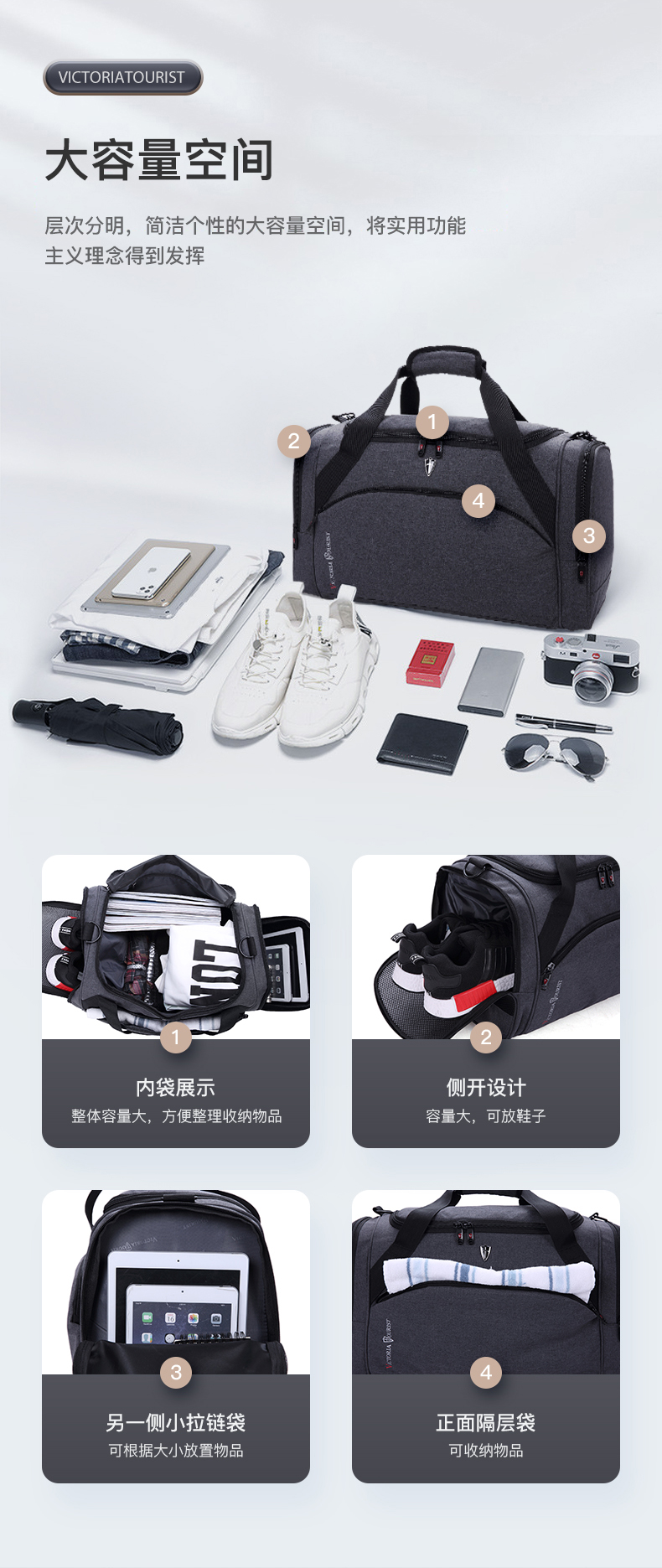商品名称:维多利亚旅行者 VICTORIATOURIST旅行包 健身包大容量行李包手提包男女旅行袋V 7010灰色